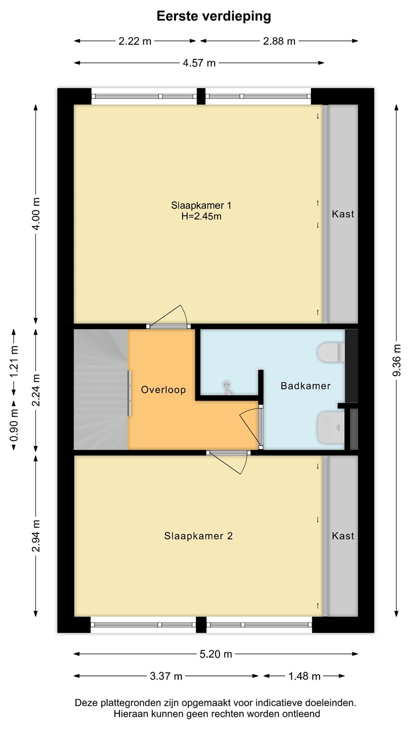 • De 2e verdieping is eveneens voorzien van 2 ruime en lichte slaapkamers. Beide slaapkamers met kast/- en bergruimte.