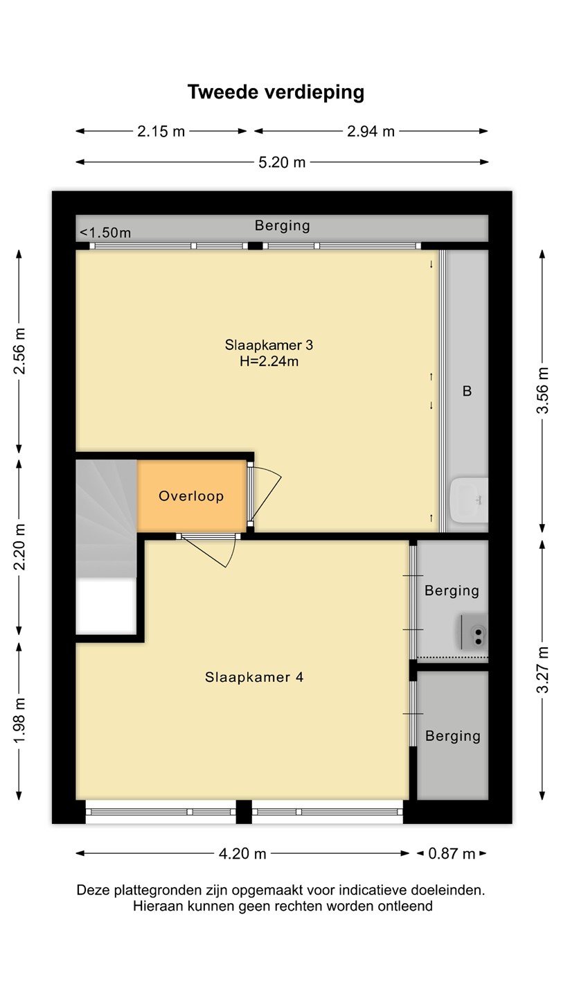 2e etage met eveneens 2 ruime slaapkamers en bergruimte.