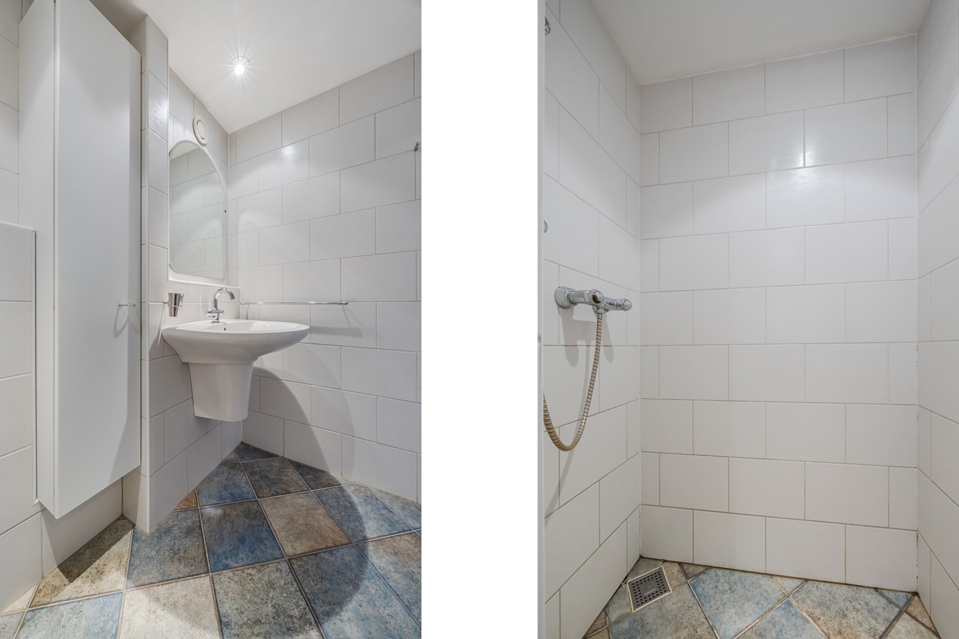 • De badkamer is voorzien van een inloopdouche, 2e toilet met zwevend closet, wastafel, designradiator en inbouwverlichting.