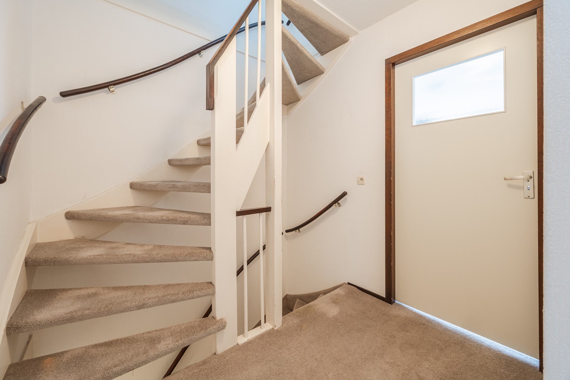 Entree naar hal met toilet, trapopgang en berging aan de voorzijde.