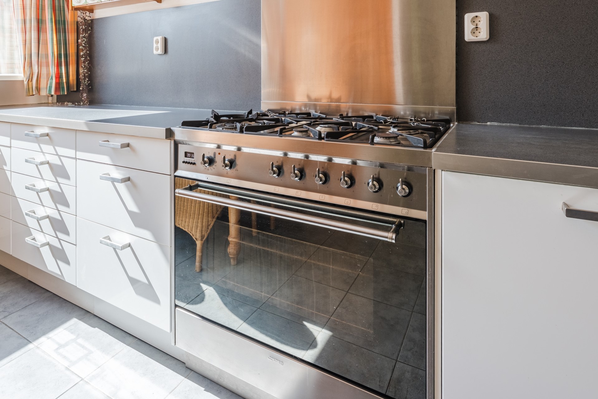 • De woonkeuken van ruim 14 m² is van ca. 2014 en onder andere voorzien van een nette tegelvloer, diverse kastjes, een spoelbak met mengkraan en restbakje, een 6-pits Smeg rvs gasfornuis met oven en rvs-afzuigkap, een magnetron, een vaatwasser en een koel-/vriescombinatie; hier geniet u rustig van uw eerste kop koffie bij het ontbijt en beleeft u de levendige avondmaaltijden met uw gezin.