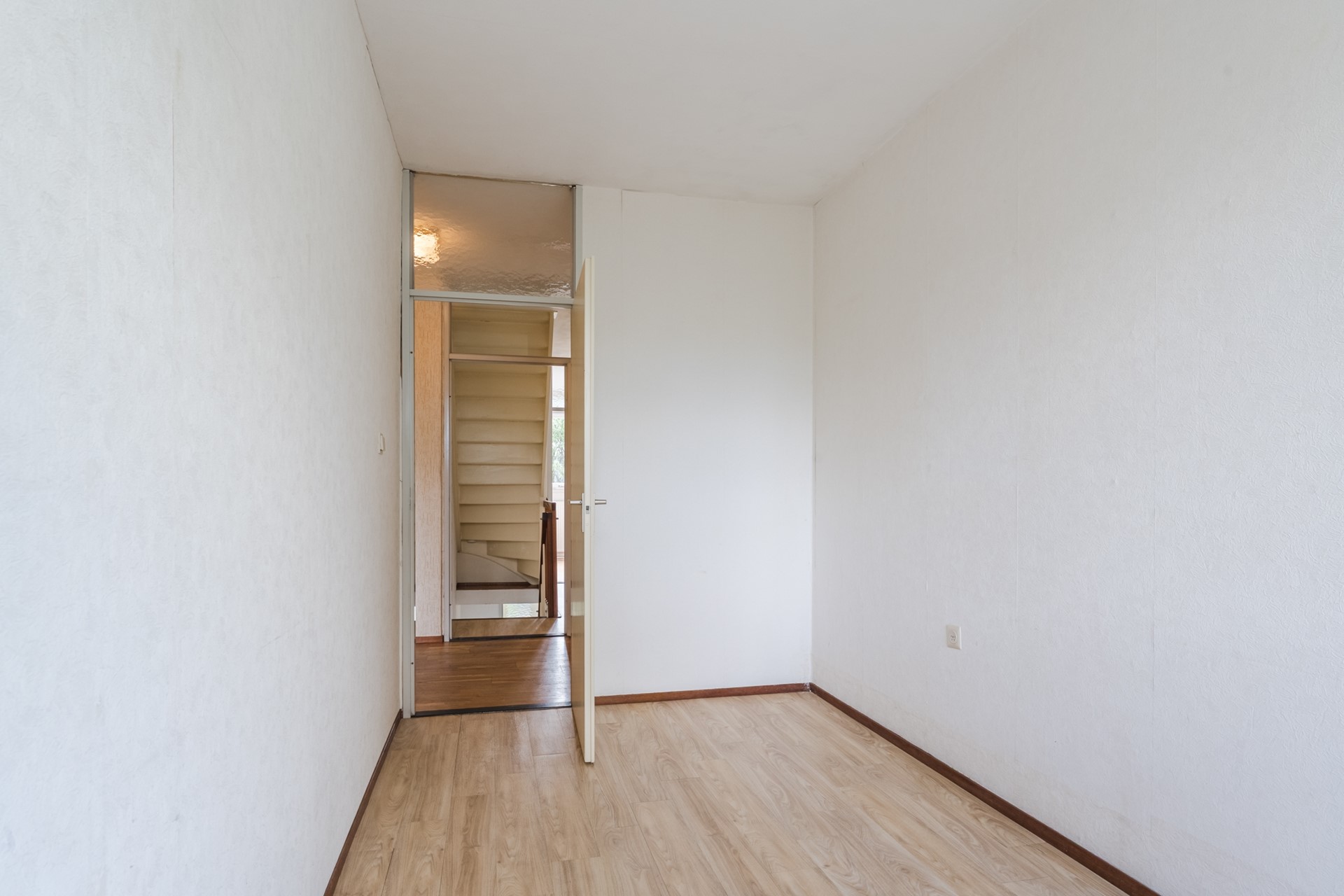 Via een open trap bereikt u de eerste verdieping. Overloop met trapopgang en toegang tot de badkamer, techniekkast en hoofdslaapkamer aan de voorzijde van de woning. Deur naar halletje met 1 vaste kast en toegang tot de 2 slaapkamers aan de achterzijde van de woning.