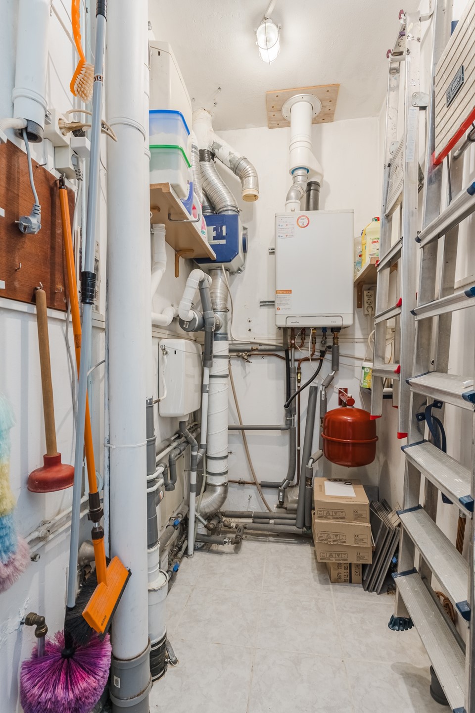 • In de handige techniek-/bergkast naast de badkamer zijn de cv-ketel en mechanische ventilatie opgesteld.