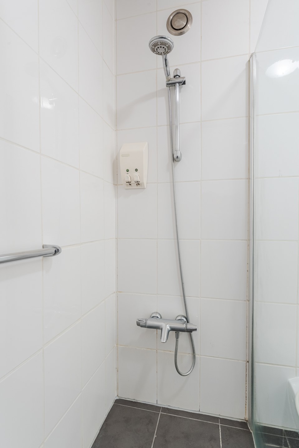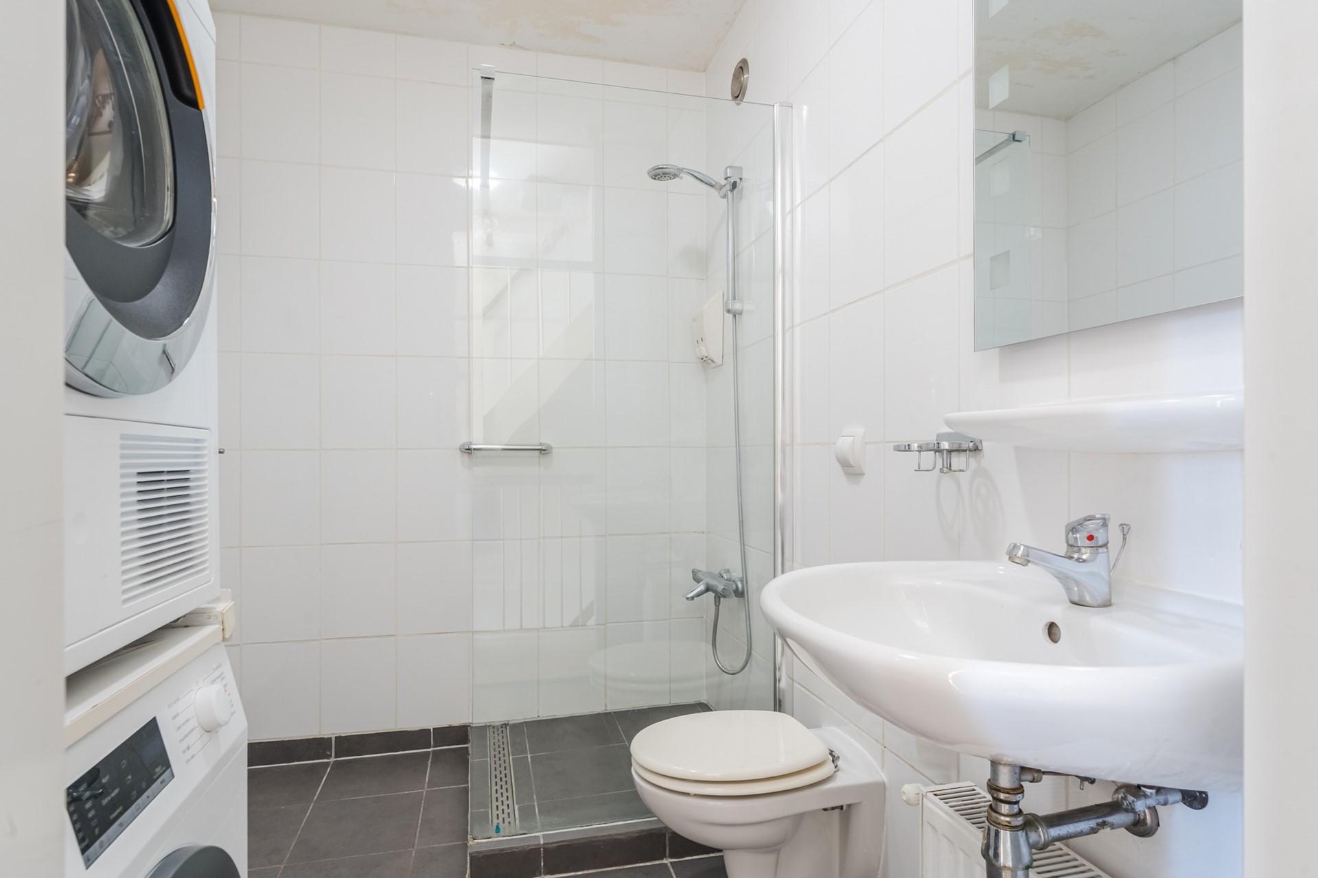 • De badkamer van ca. 2013 is ruim 4 m² groot, volledig betegeld en beschikt over een inloopdouche, tweede toilet, wastafel en was-/droogmachine-aansluiting.