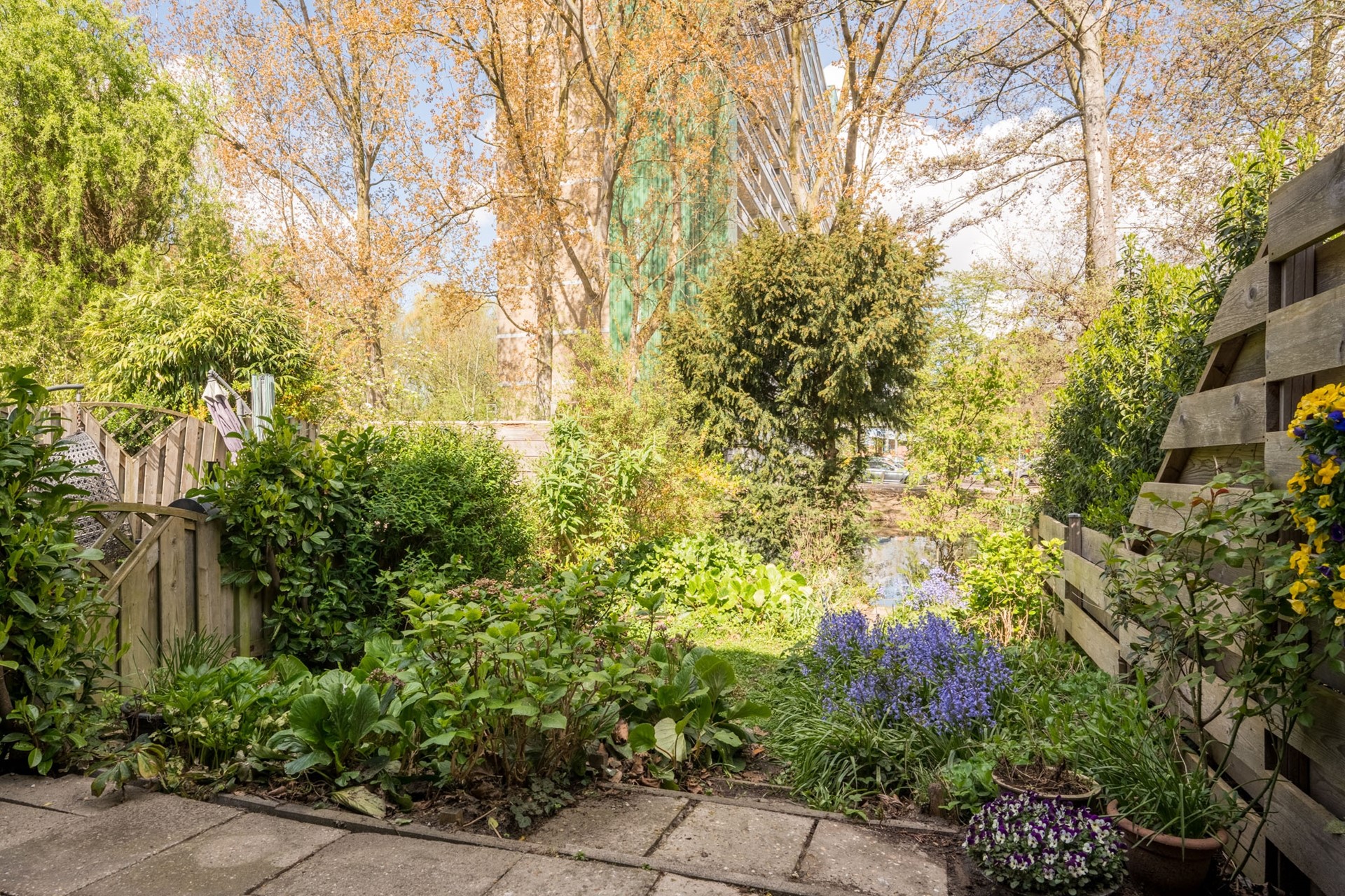 • De diepe achtertuin is rustig gelegen, voorzien van een terras en diverse groenborders en met leuk uitzicht over het water.