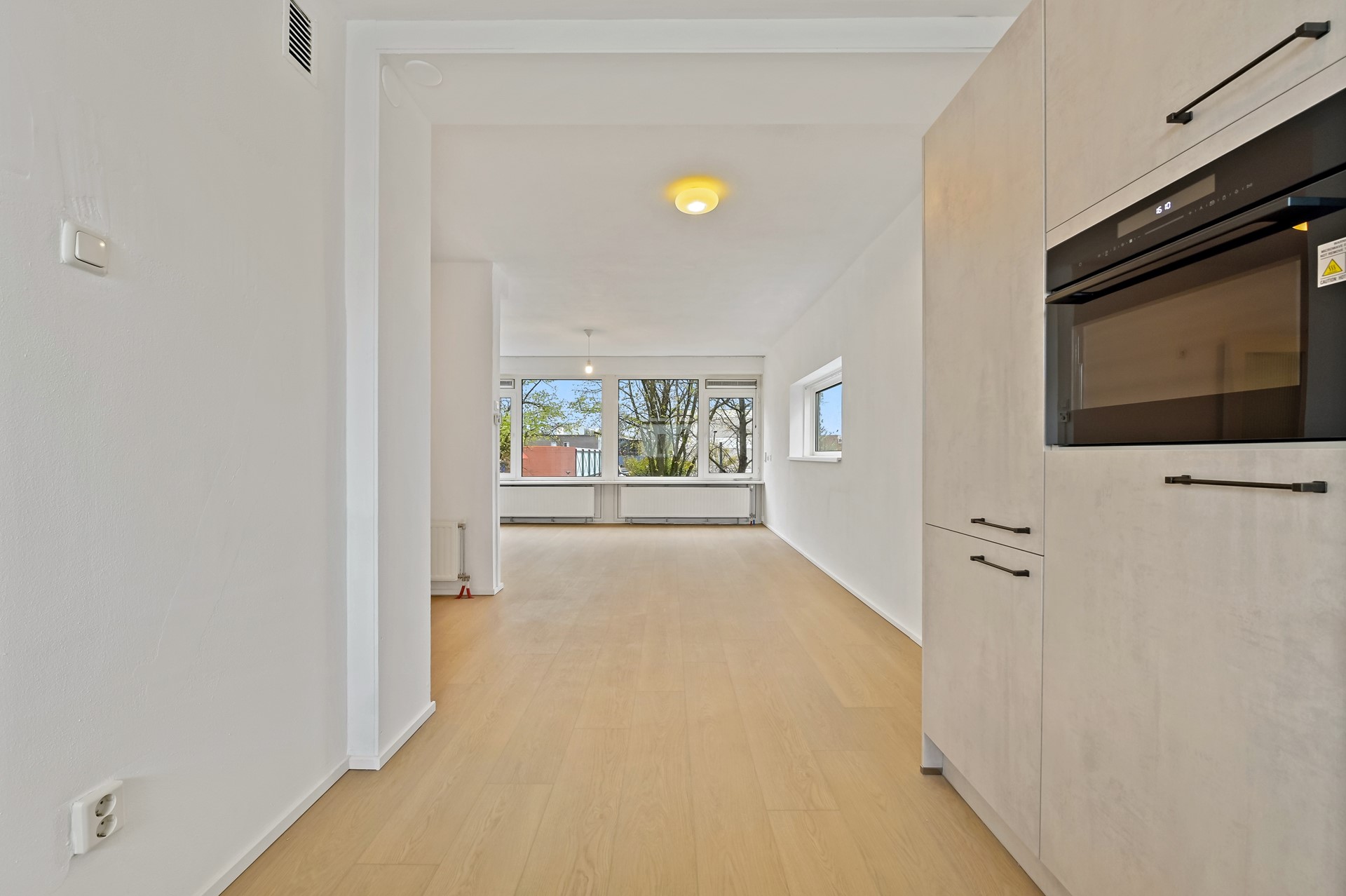 Verrassend ruim en goed ingedeeld 4-kamerappartement met een zonnig terras op het zuiden. Het appartement is netjes afgewerkt en voorzien van een PVC vloer, nieuwe keuken, nieuwe badkamer en toilet. Gunstig op de hoek gelegen met veel lichtinval en leuk uitzicht vanuit de woonkamer. Gelegen op de eerste woonlaag van een fijn appartementencomplex met lift en eigen berging.