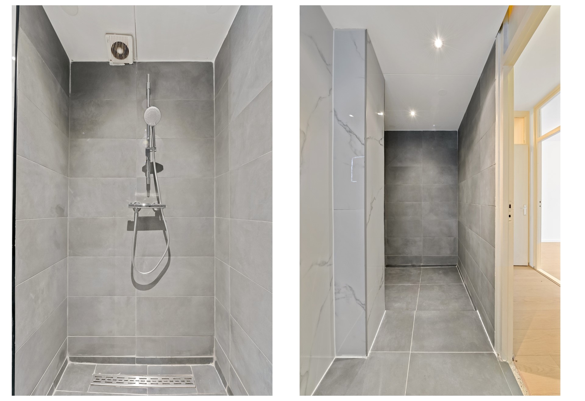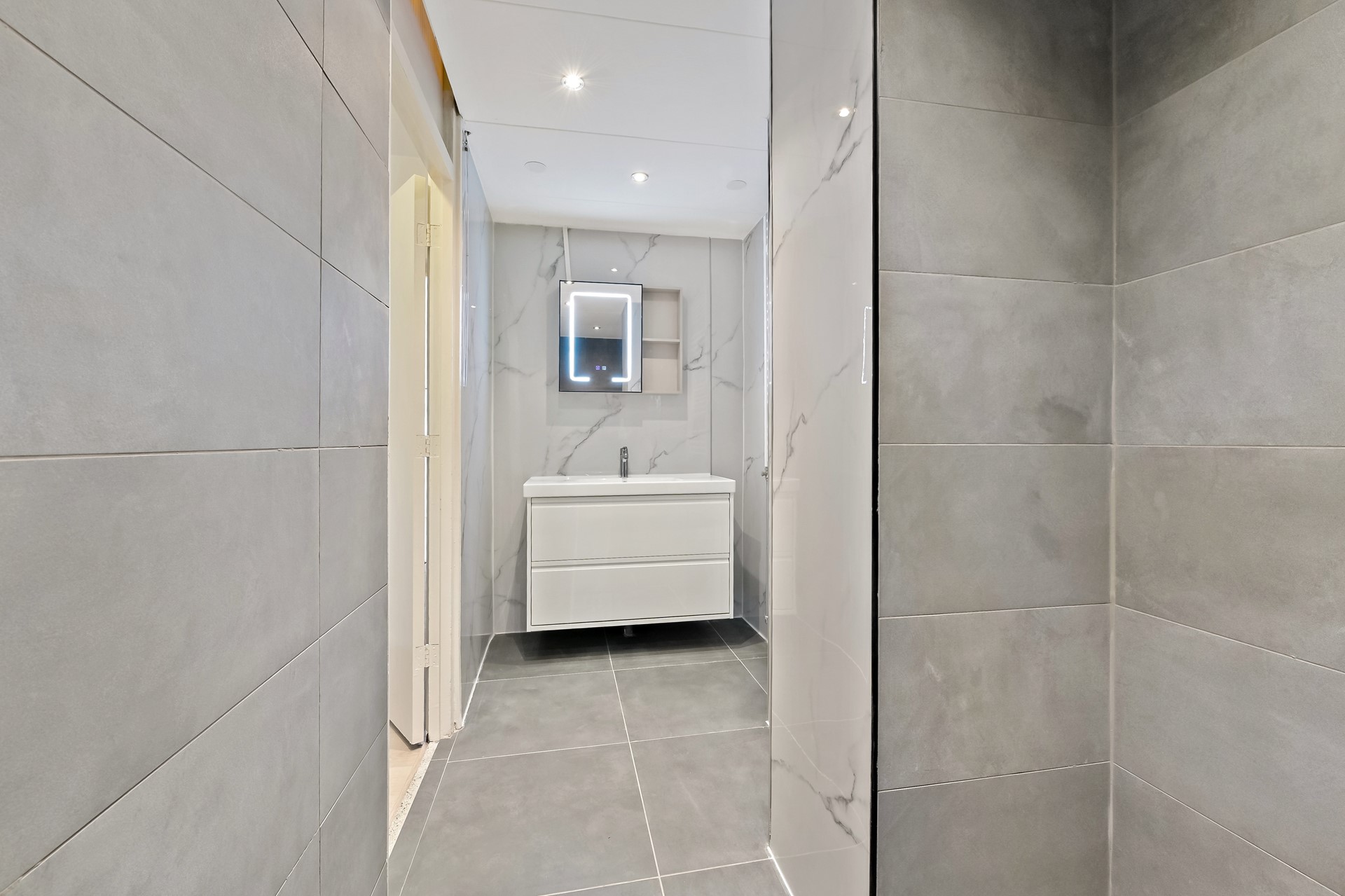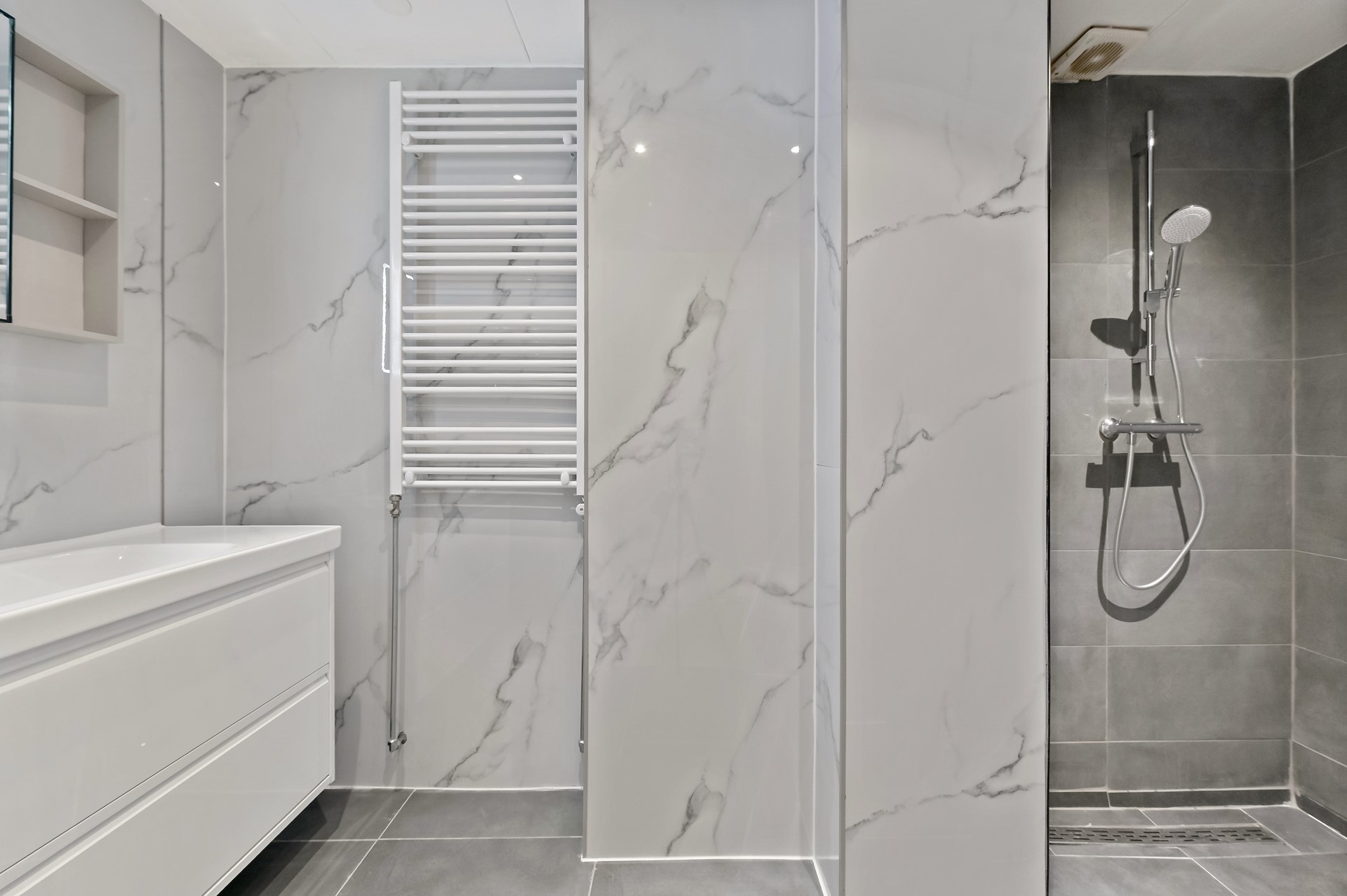 • De moderne badkamer is voorzien van een inloopdouche, wastafel met meubel, designradiator, spiegelkastje en mechanische ventilatie.