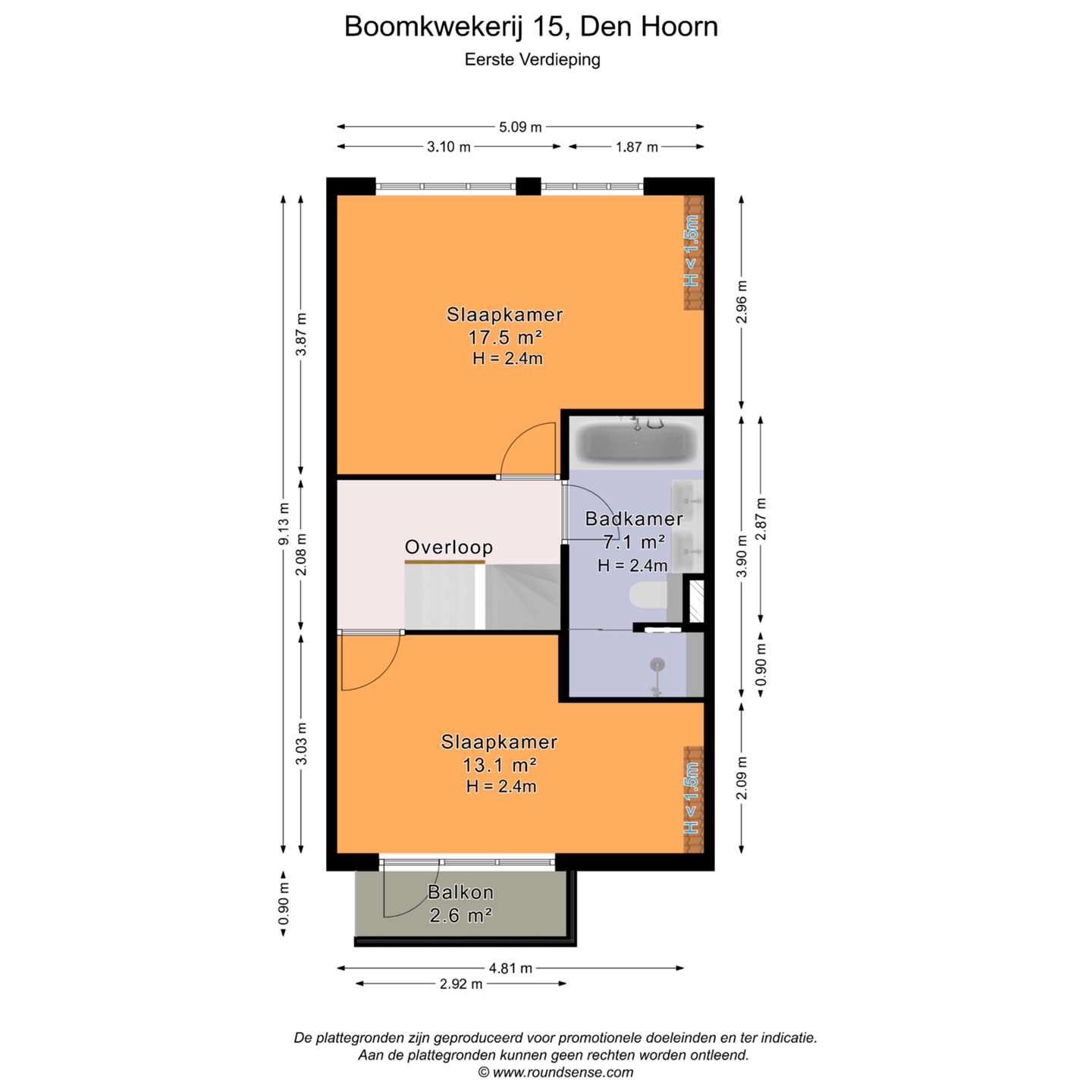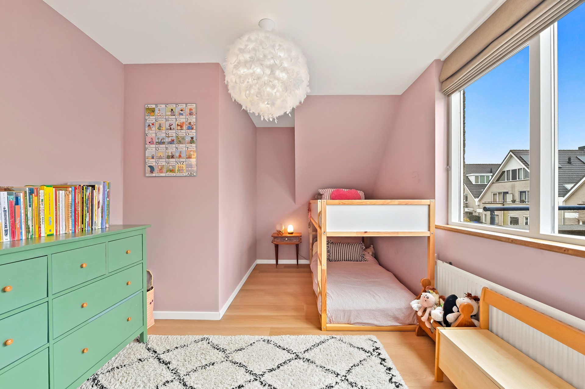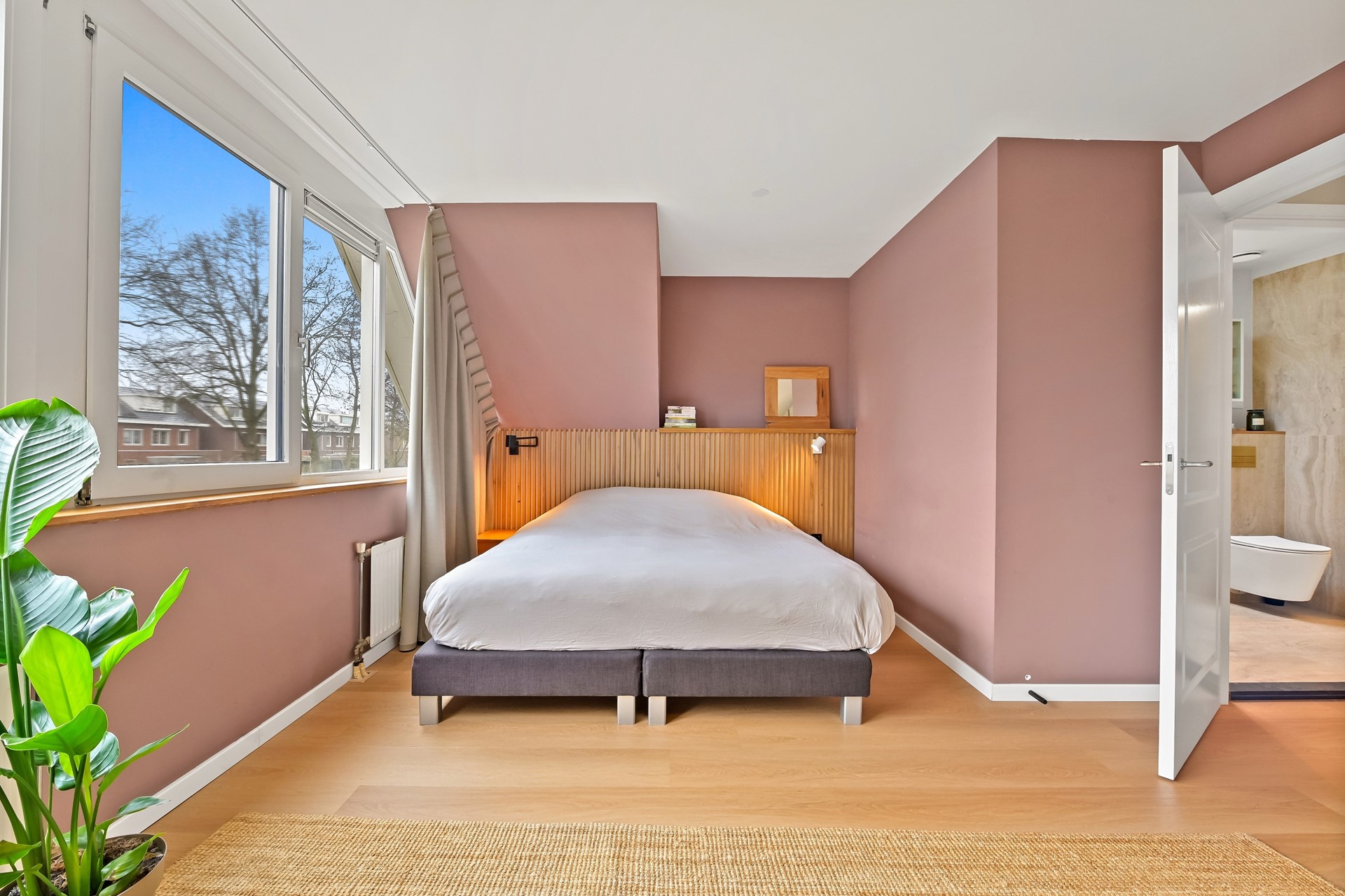 • De slaapkamer aan de achterzijde is een royale master bedroom van ca. 17 m², desgewenst weer op te delen in 2 slaapkamers (zoals bij meerdere woningen in de wijk is gedaan).