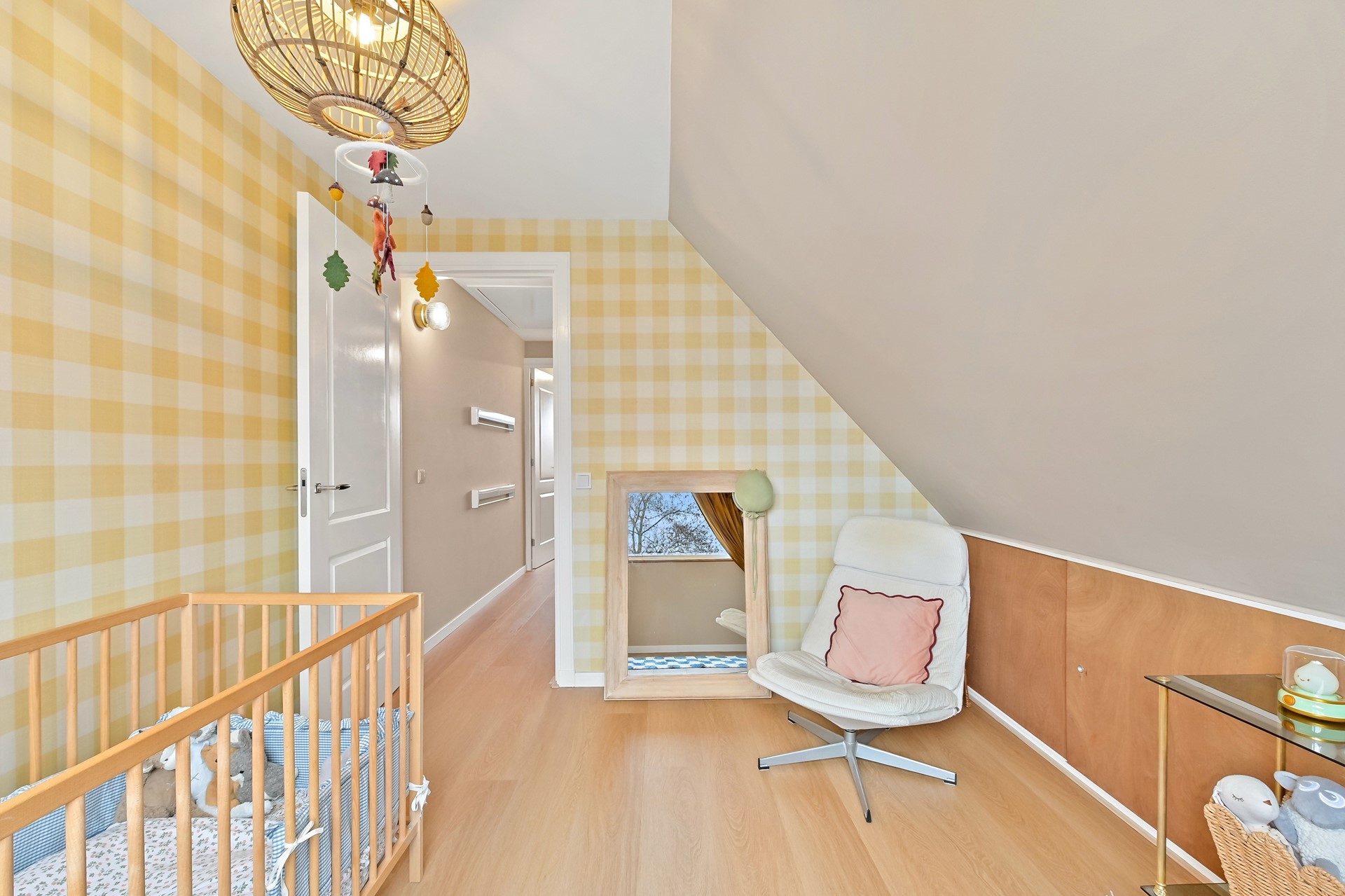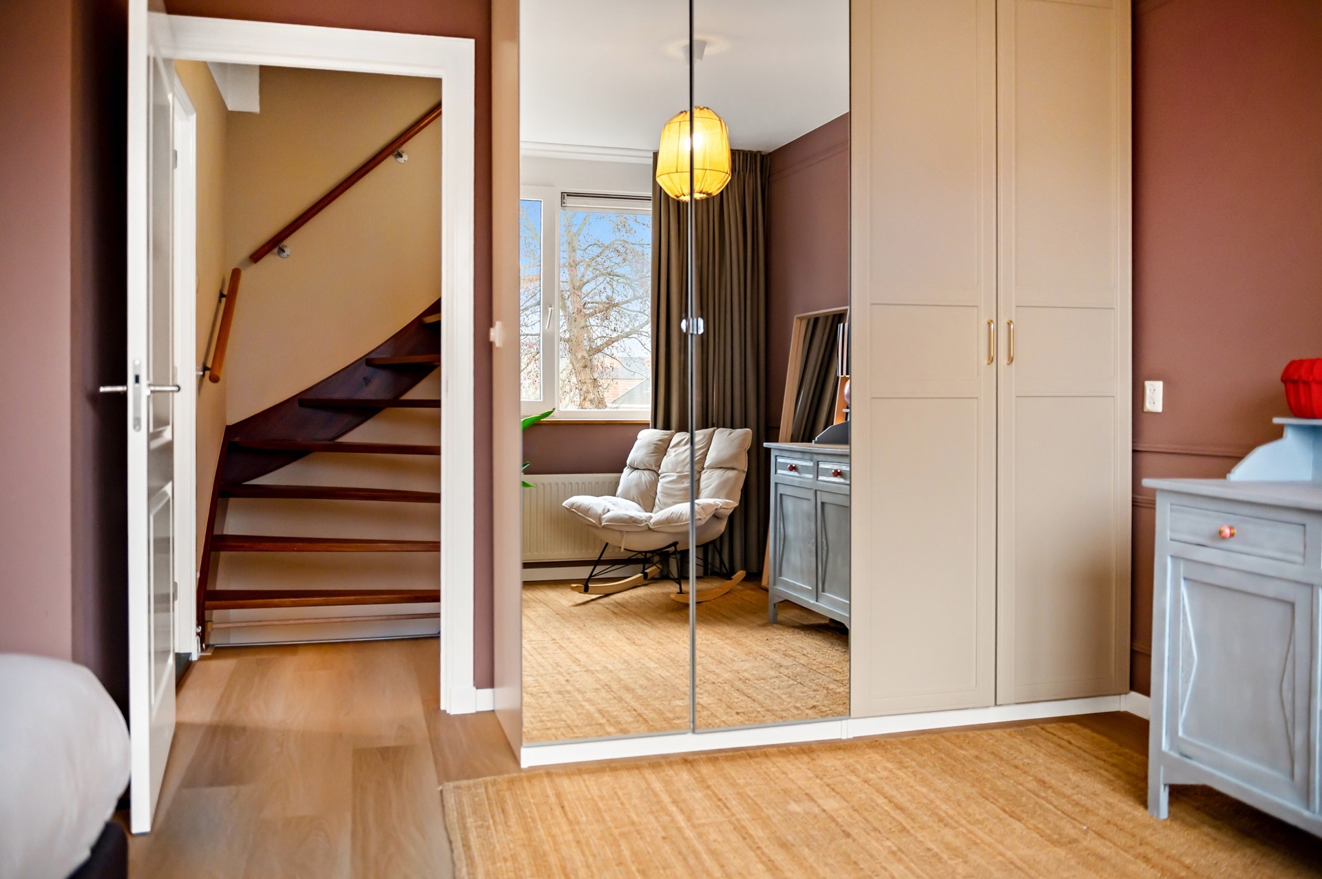 1e etage is voorzien van 2 slaapkamers en badkamer.