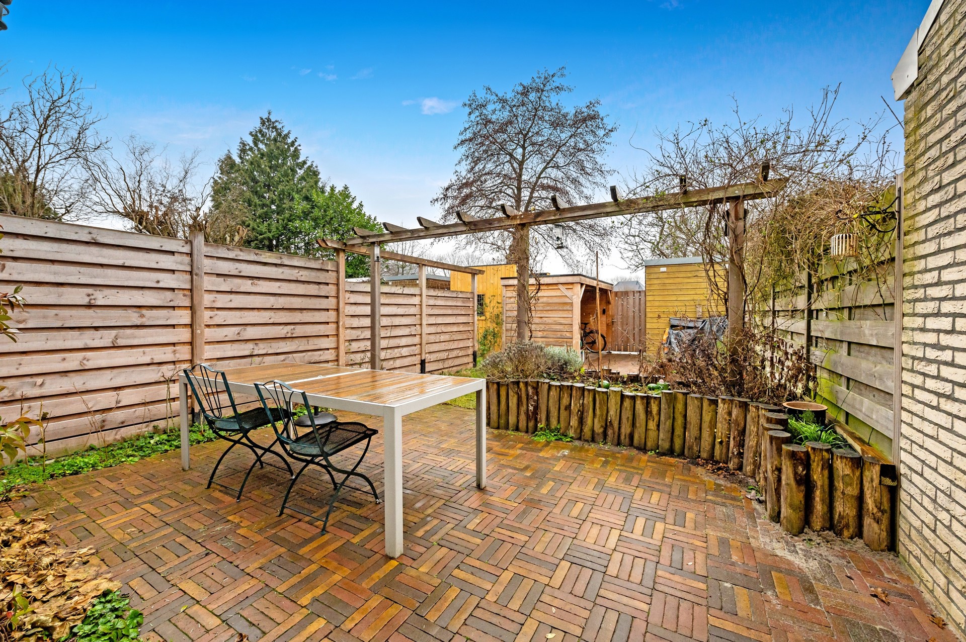 • De achtertuin heeft vrij zicht (geen directe achterburen), groen uitzicht en een poort/achteruitgang.