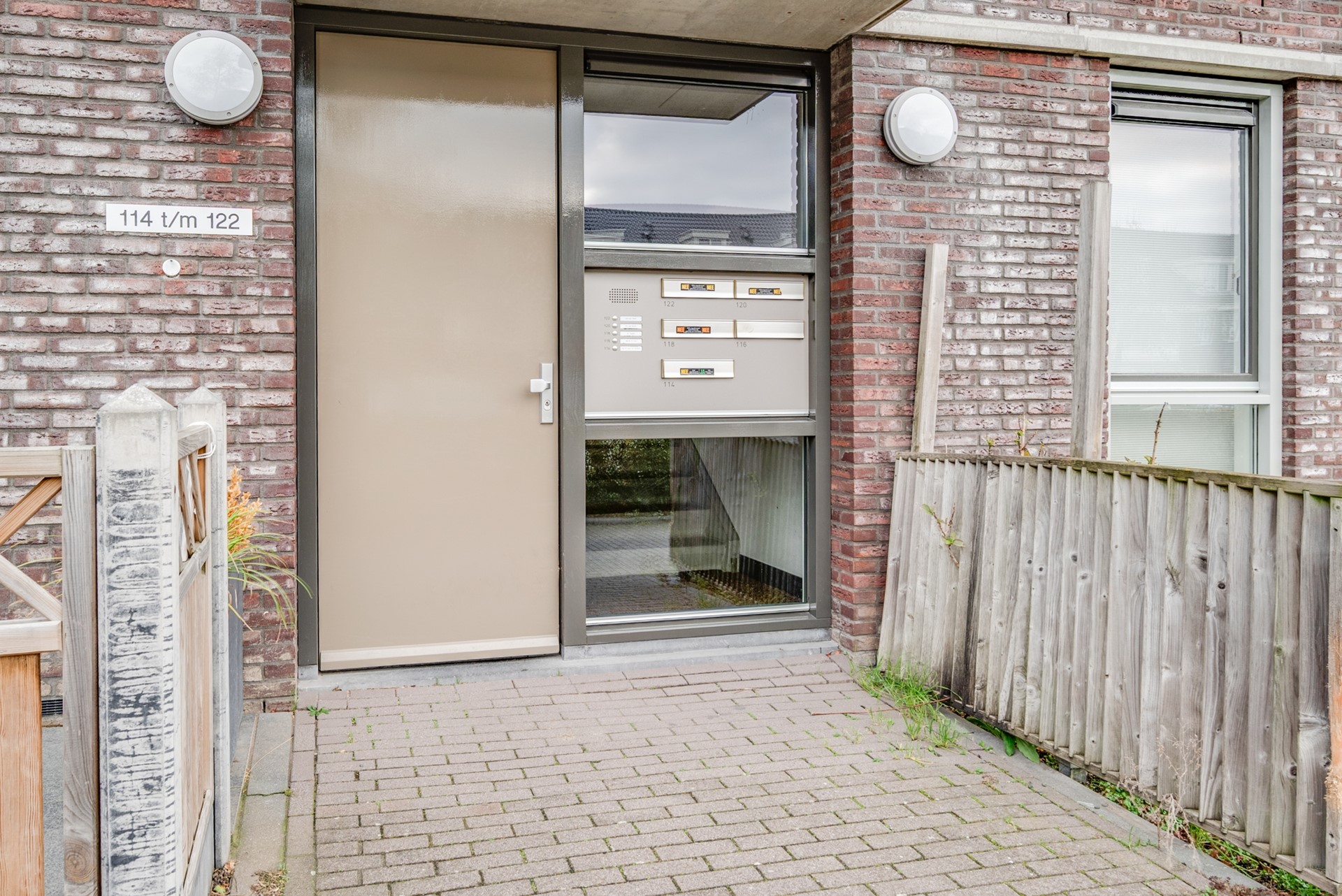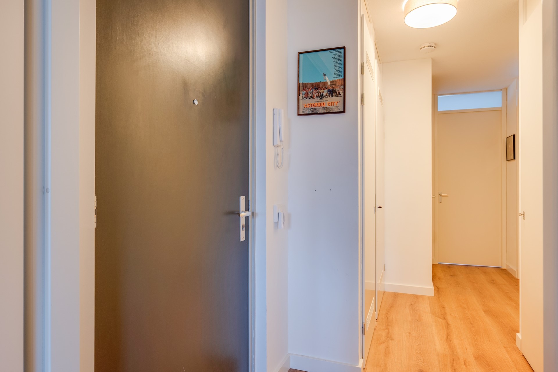 Entree/gang met deur naar de woonkamer met open keuken, separaat toilet, badkamer, 2 slaapkamers en aparte wasruimte.