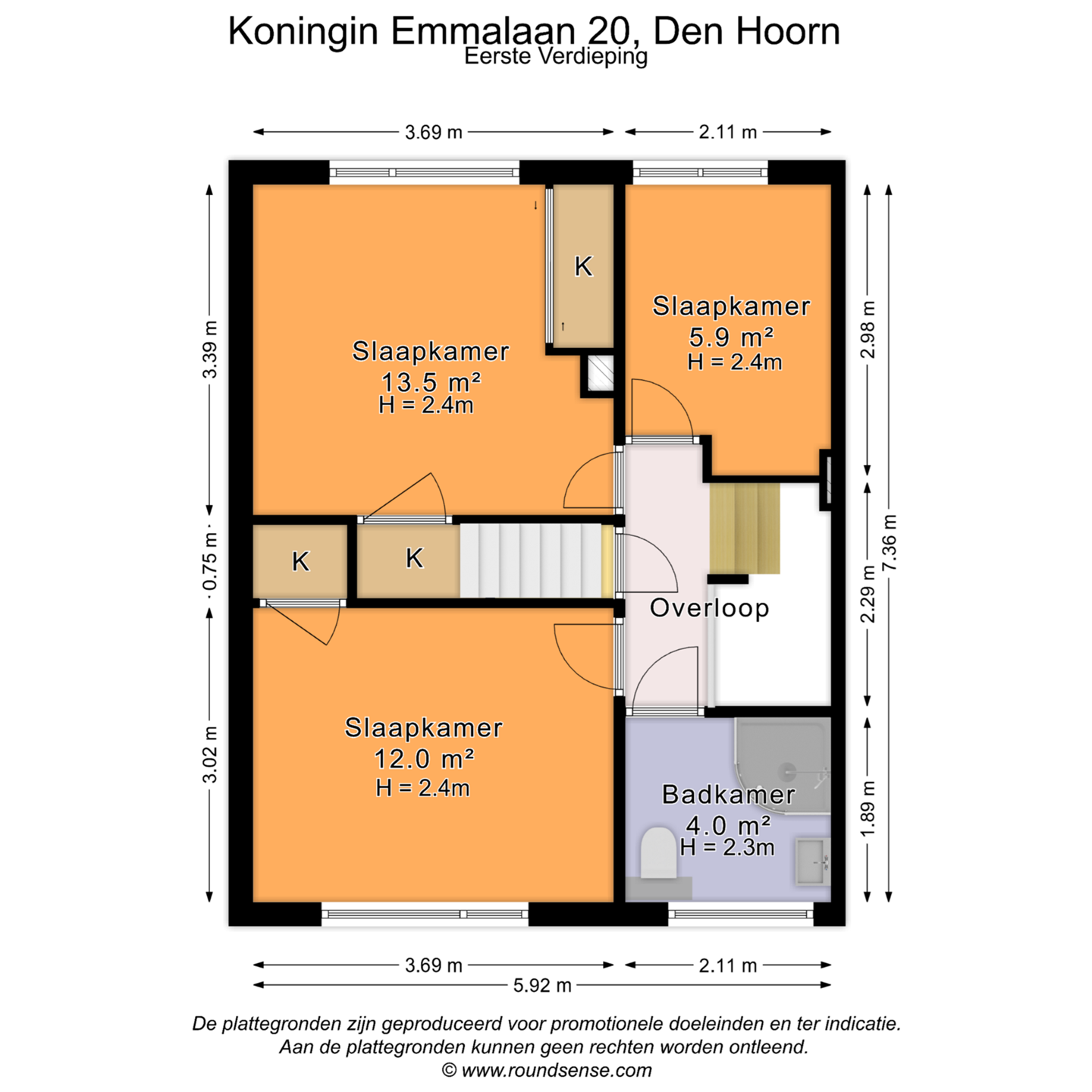 • Eerste etage met 3 slaapkamers van resp. ca. 14,- 12- en 6 m²; de twee grote slaapkamers beschikken nog over de originele inbouwkast.