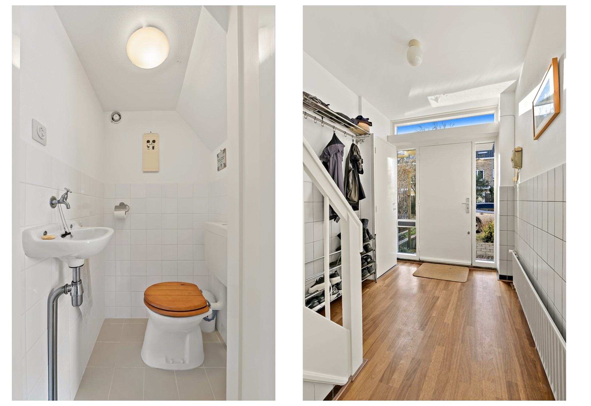 • Het toilet in de hal is half betegeld, voorzien van staand toilet en fonteintje.