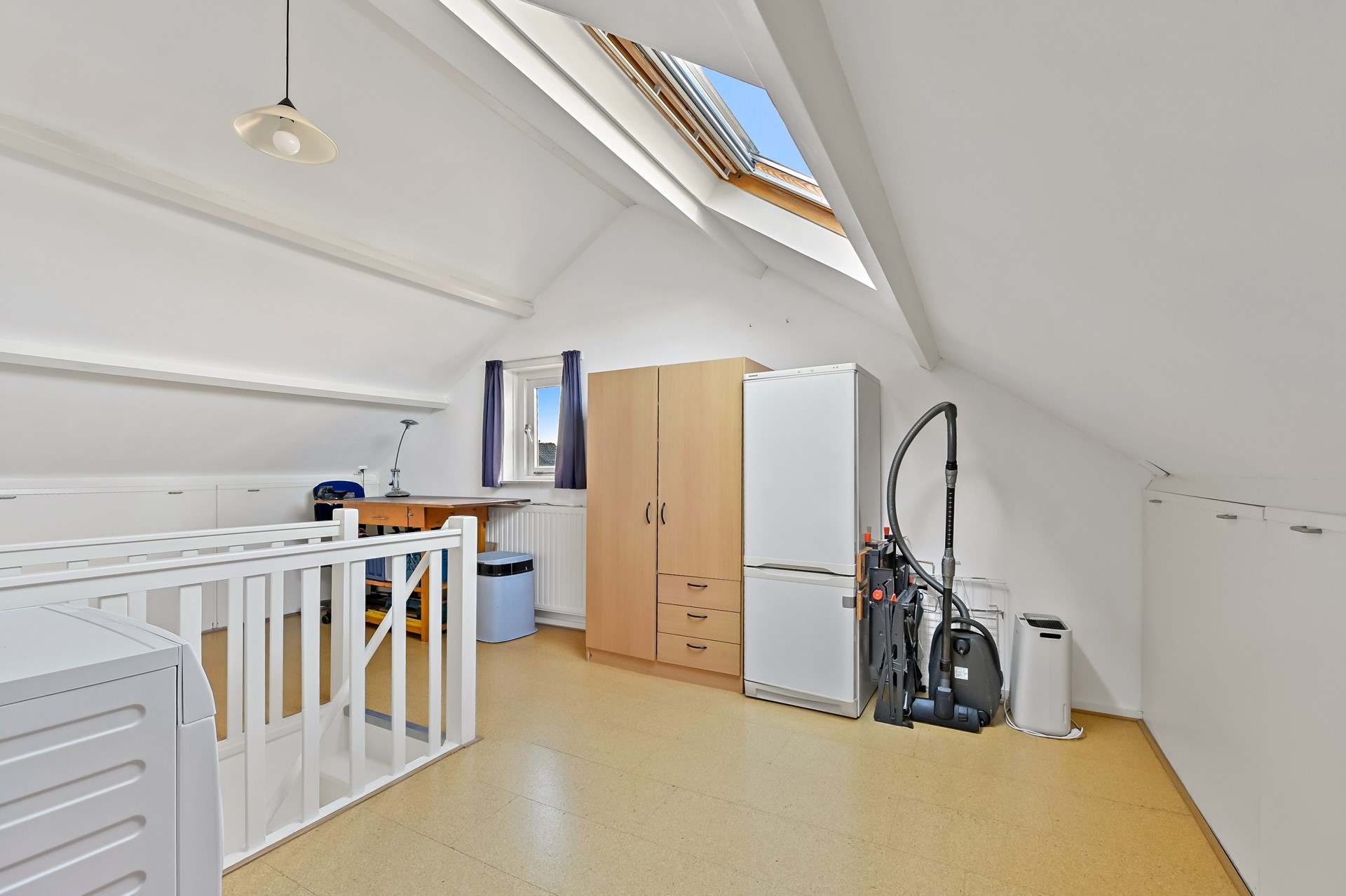 • Op de voorzolder is een kantelraam en er is ook hier extra licht door het zijraam.