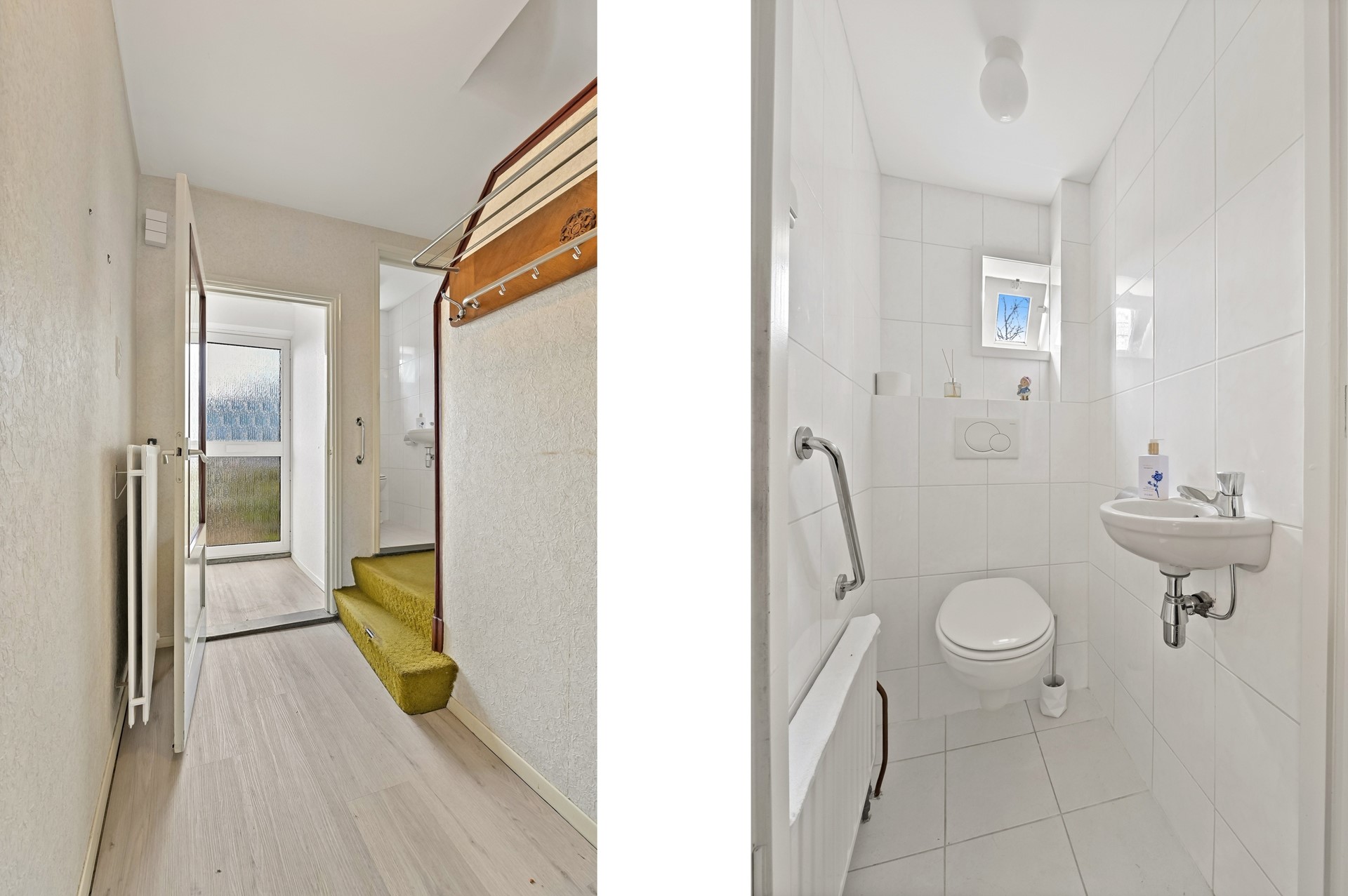 • Het toilet in de hal is voorzien van een zwevend closet en wasbakje.
