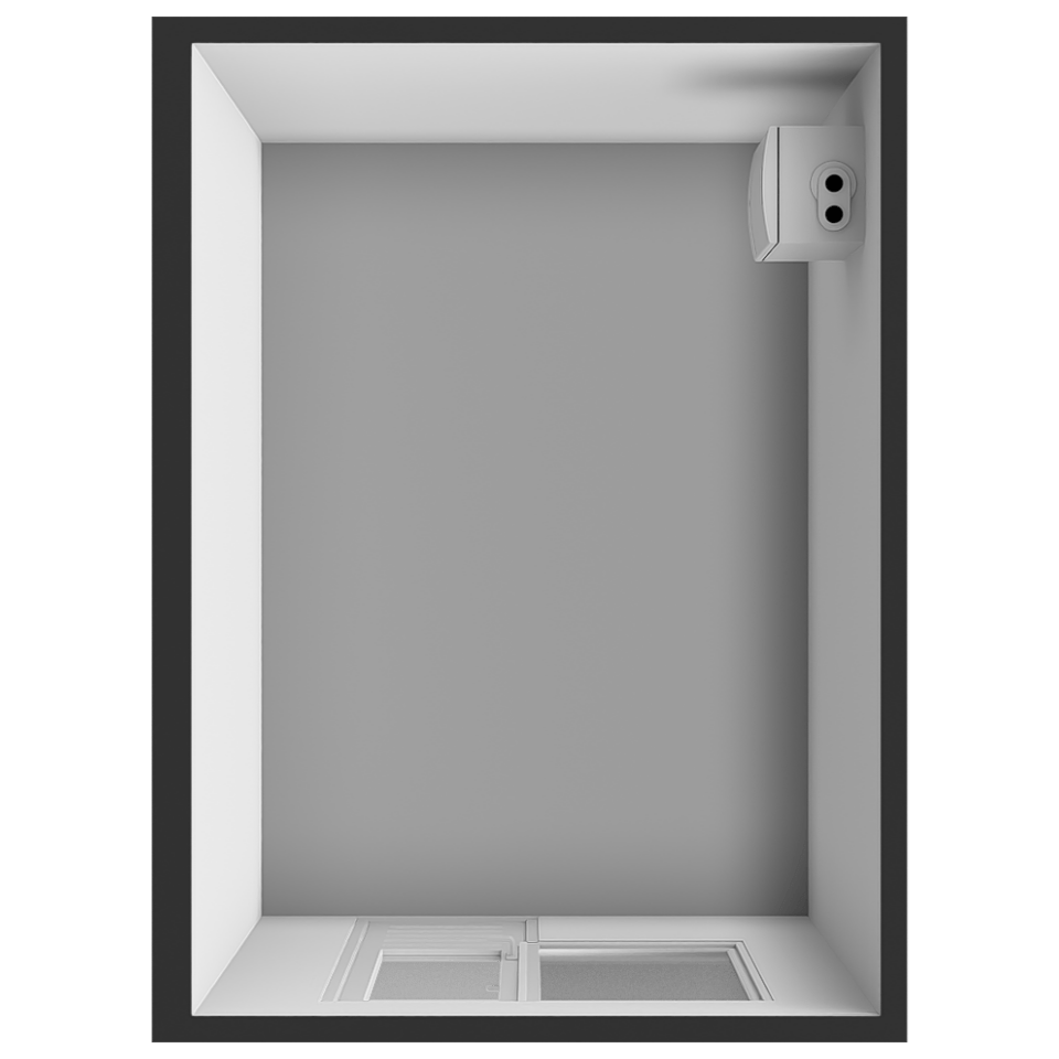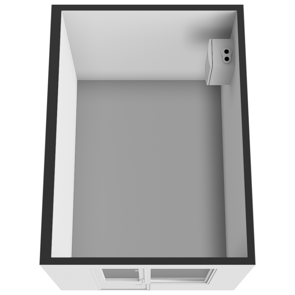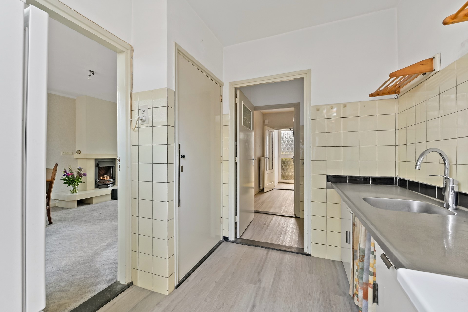 • Eenvoudige keuken met vaste kast en toegang tot de badkamer.