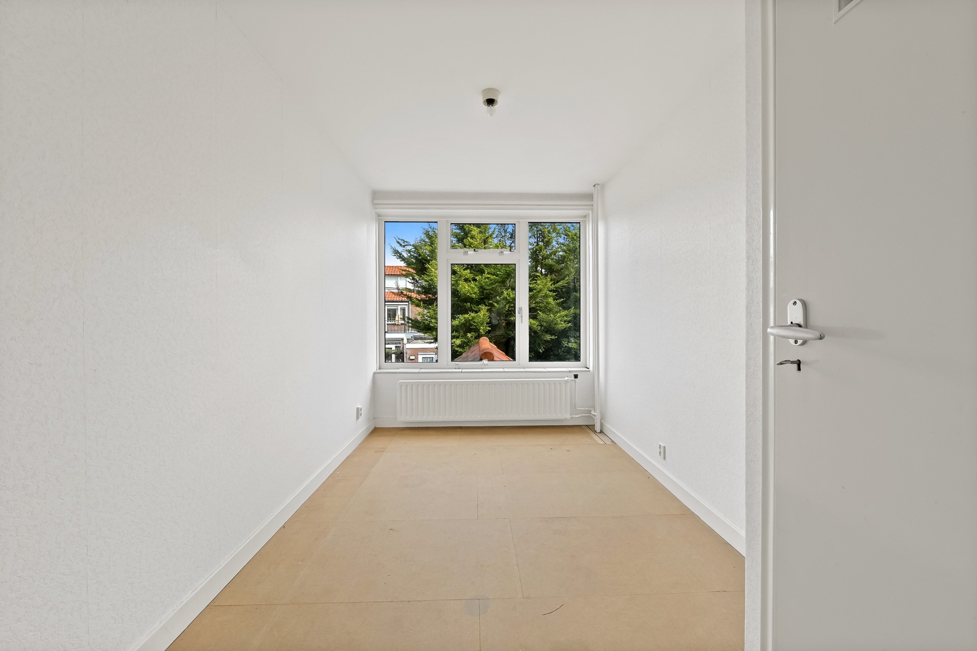 • De slaapkamers aan de voorzijde zijn ca. 6,5 en ca. 11,5 m². Beide kamers zijn voorzien van een vaste kast en de grote grote slaapkamer heeft tevens een wastafel.