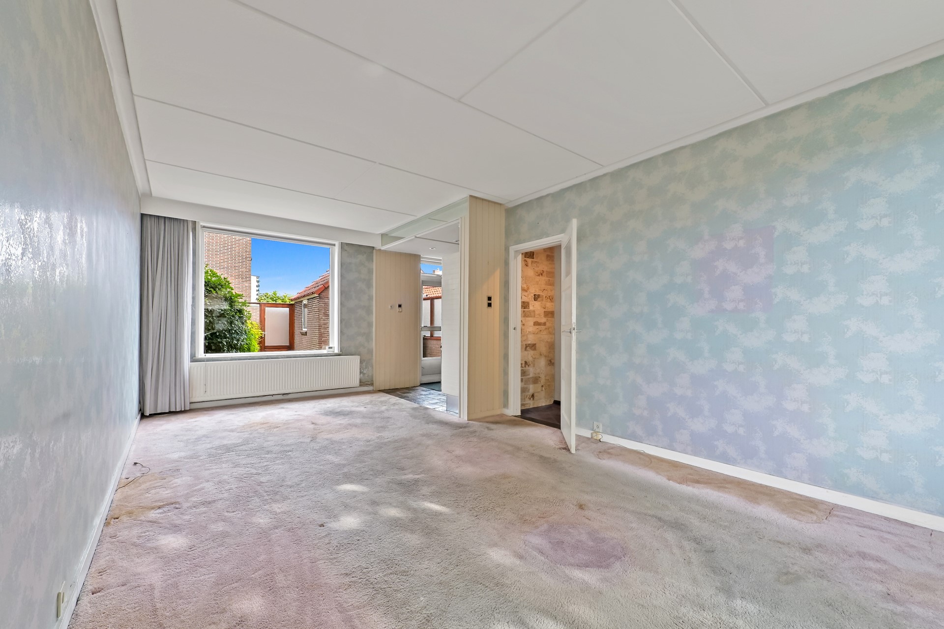 • Doorzonwoonkamer van ca. 26 m² met doorloop naar de open keuken aan de achterzijde.