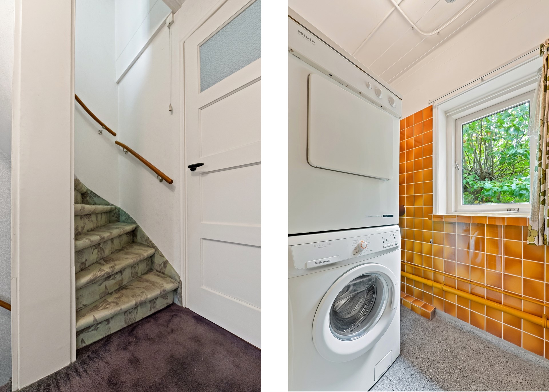 • Wasruimte aan de voorzijde met wasmachine- en droger aansluiting. Tevens nog een oude douche aanwezig. Leuke granito vloer en authentieke wandtegeltjes.