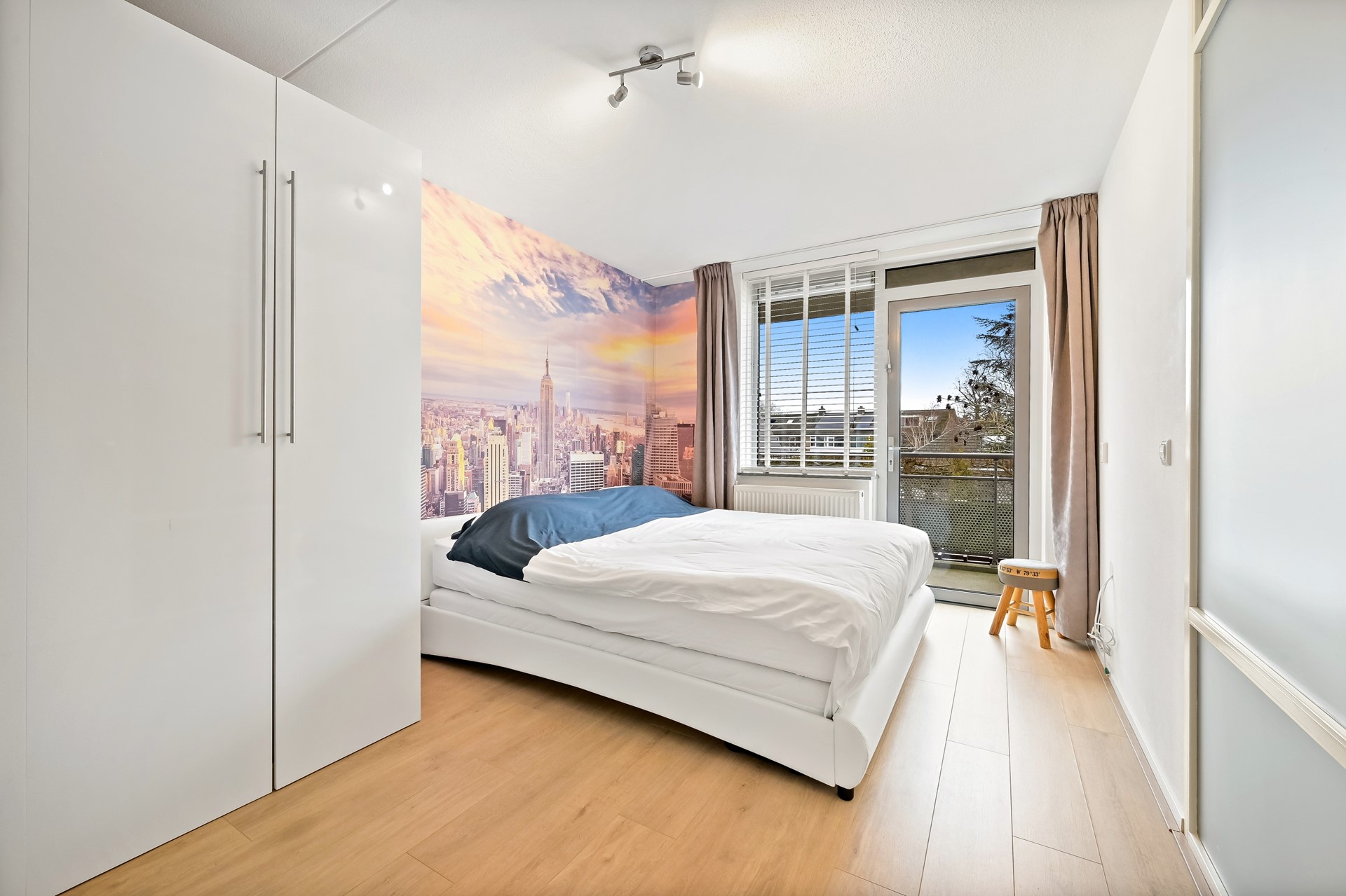 • Via de woonkamer te bereiken royale slaapkamer aan de achterzijde van ca. 14 m² met deur naar het heerlijk zonnige balkon. Deur naar de badkamer.