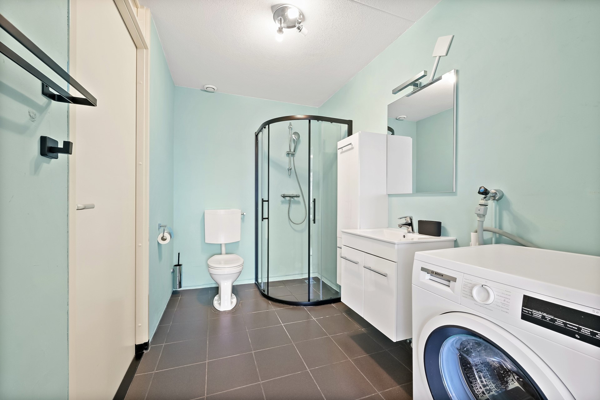 • De badkamer ensuite is voorzien van een douchehoek, toilet, wastafel met meubel, handdoekenkastje en wasmachine-opstelplaats.