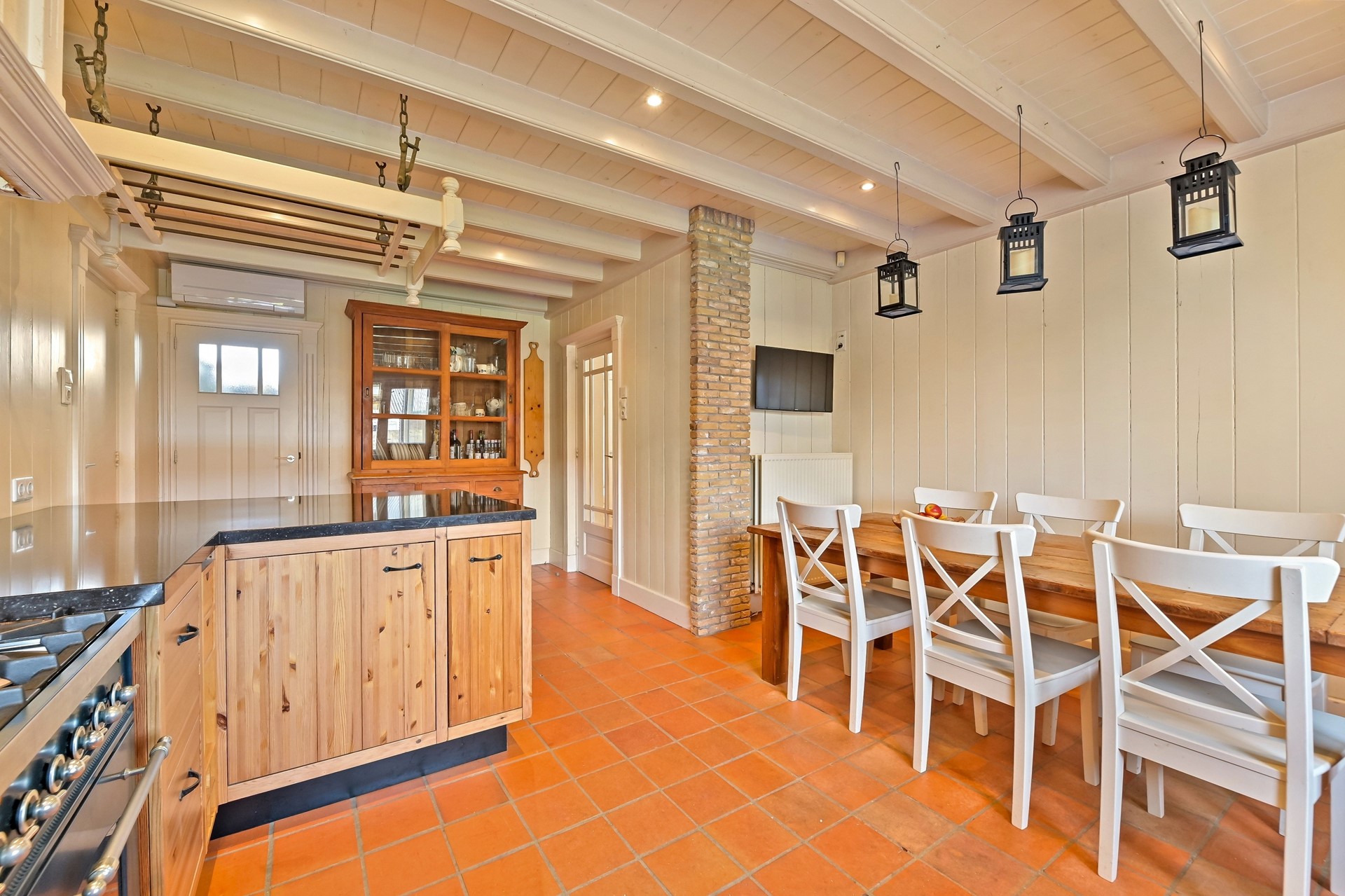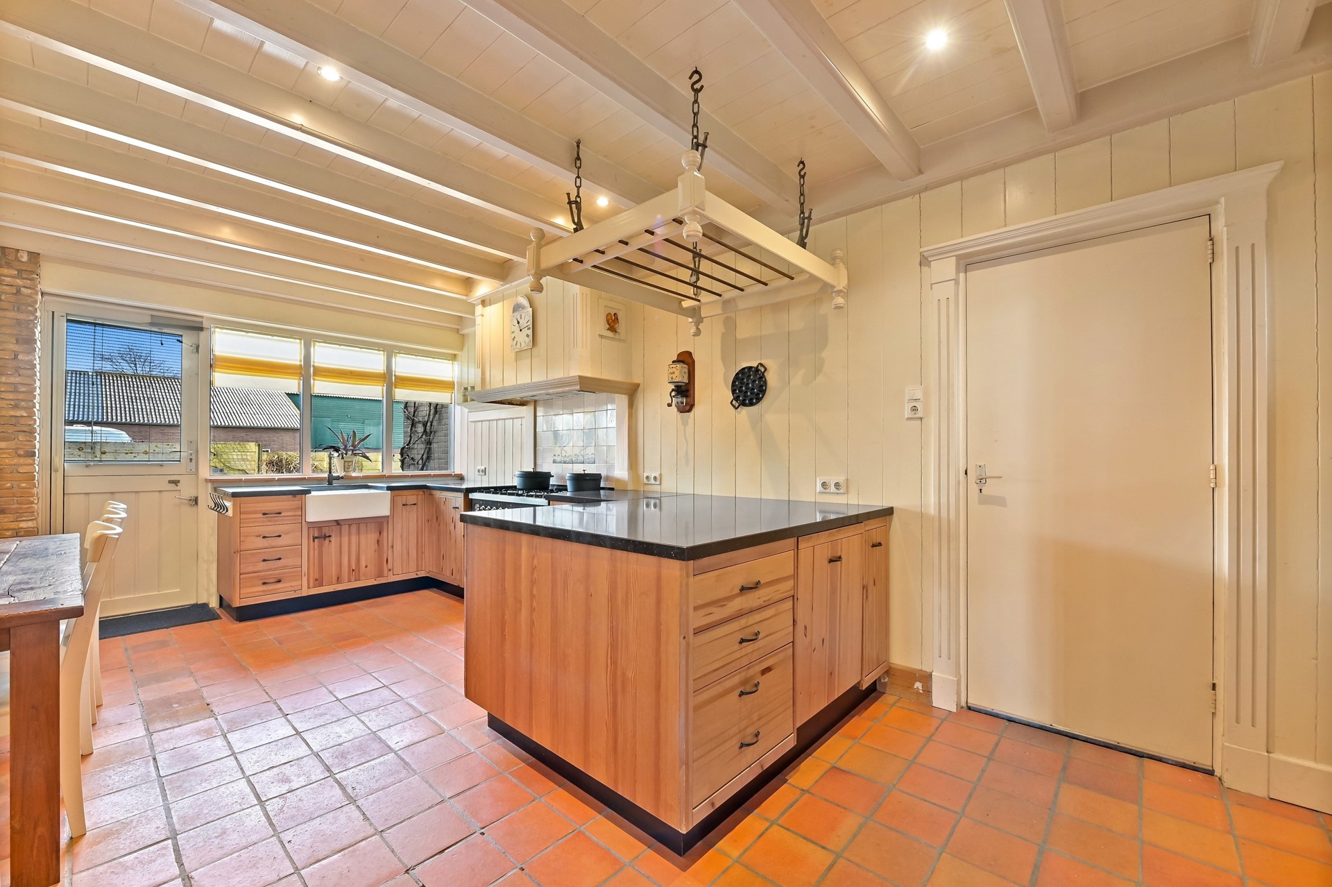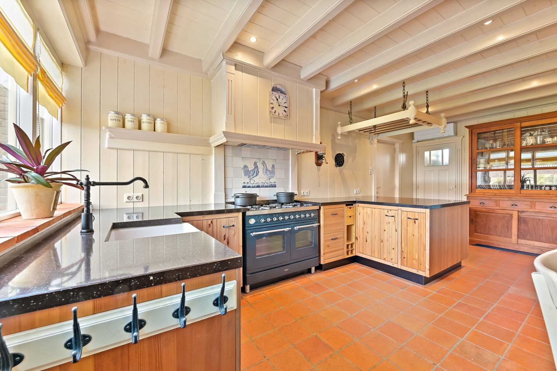• De royale woonkeuken is de verbinding met de voormalige stal die de afgelopen jaren, in etappes, bij de woning is betrokken en een nadere indeling heeft gekregen.