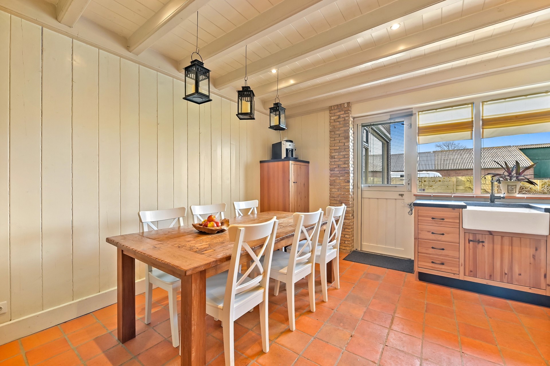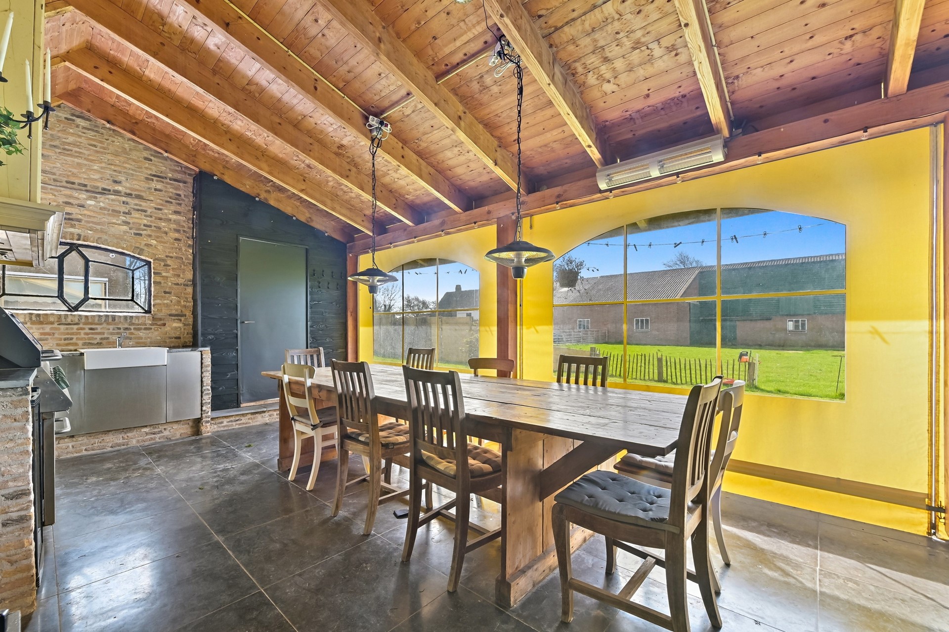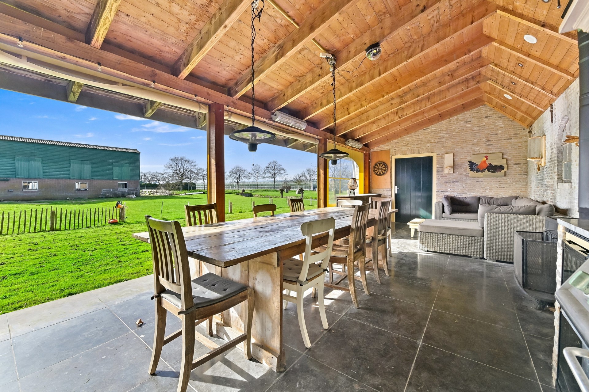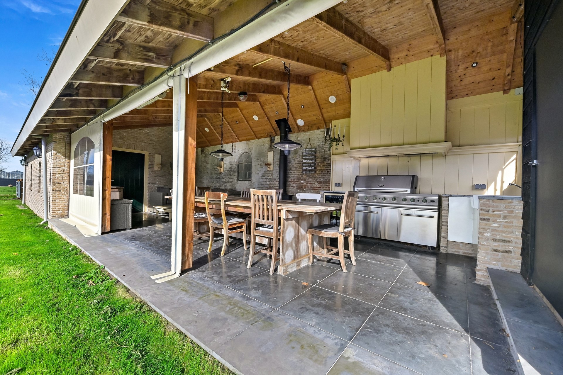 Ook buiten is aan alles gedacht in de vorm van een landelijke buitenkeuken, groot terras en 6 aangelegde parkeerplaatsen.