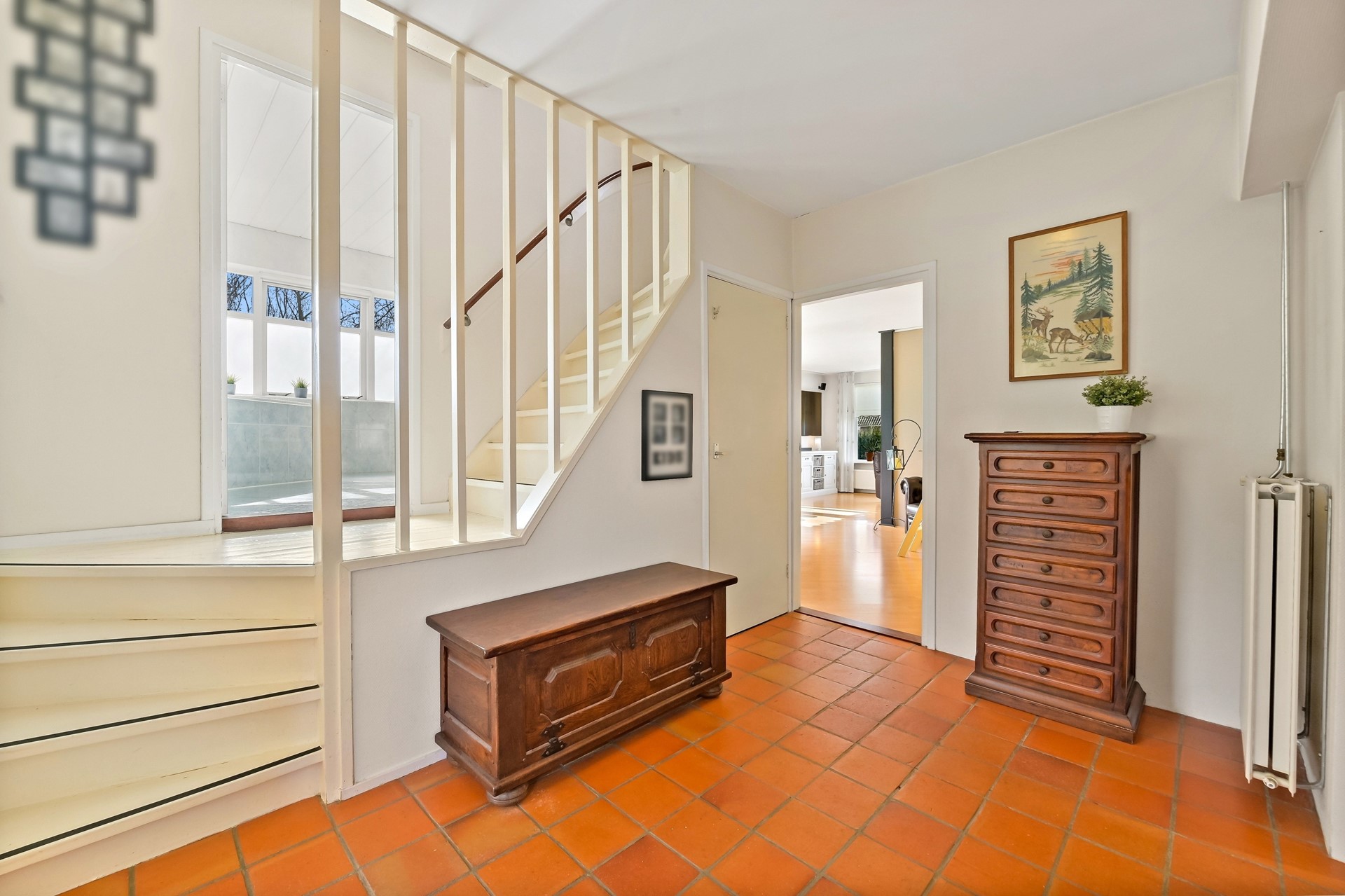 • Naastgelegen hal met vide en trapopgang.