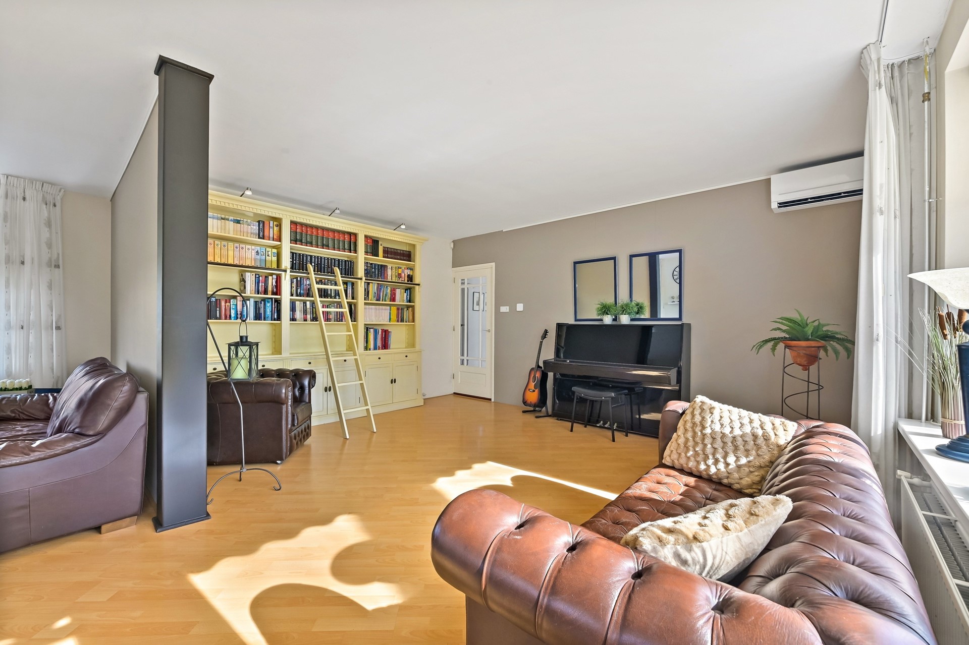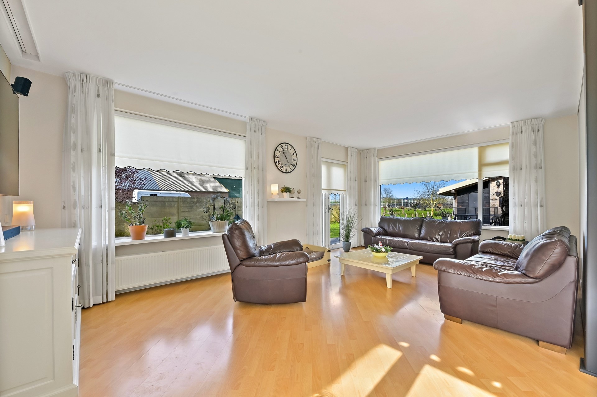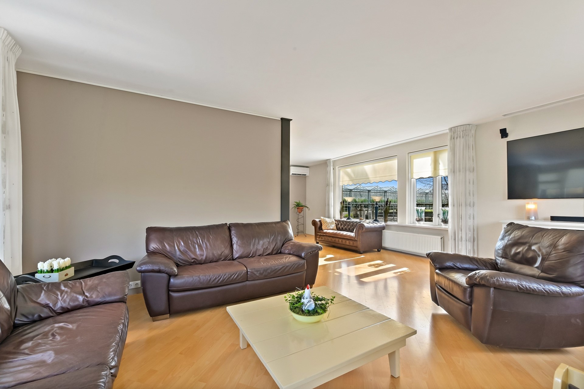• Het voorhuis is voorzien van een woonkamer met veel lichtinval, airco en vrij zicht op de tuin.