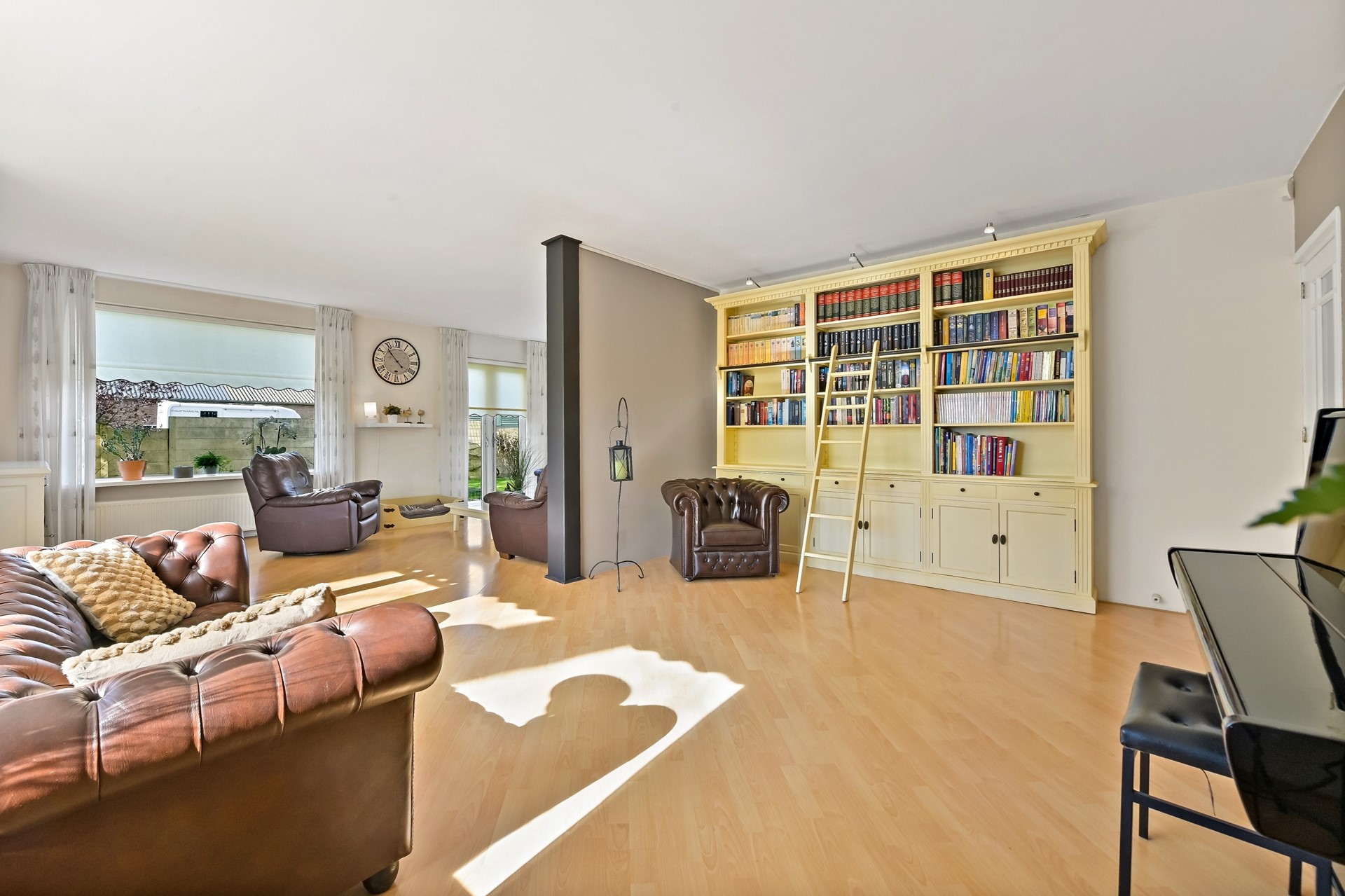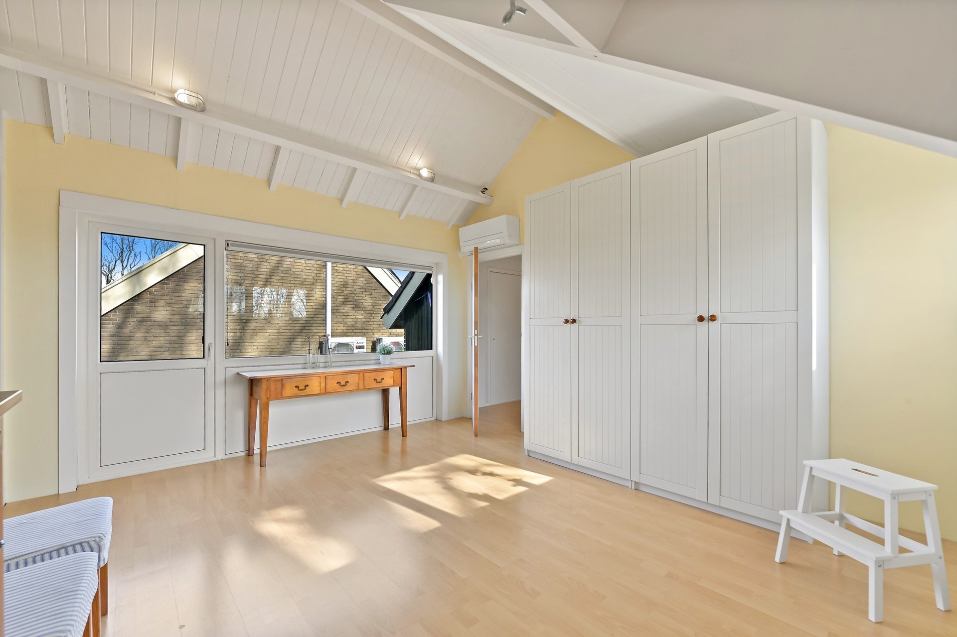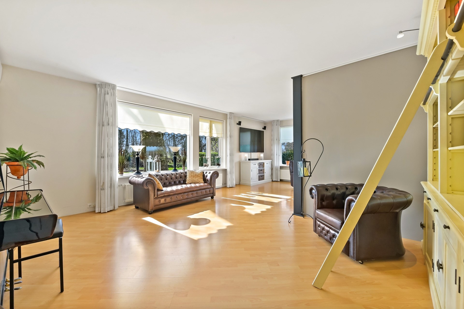 • Het voorhuis is voorzien van een woonkamer met veel lichtinval, airco en vrij zicht op de tuin.