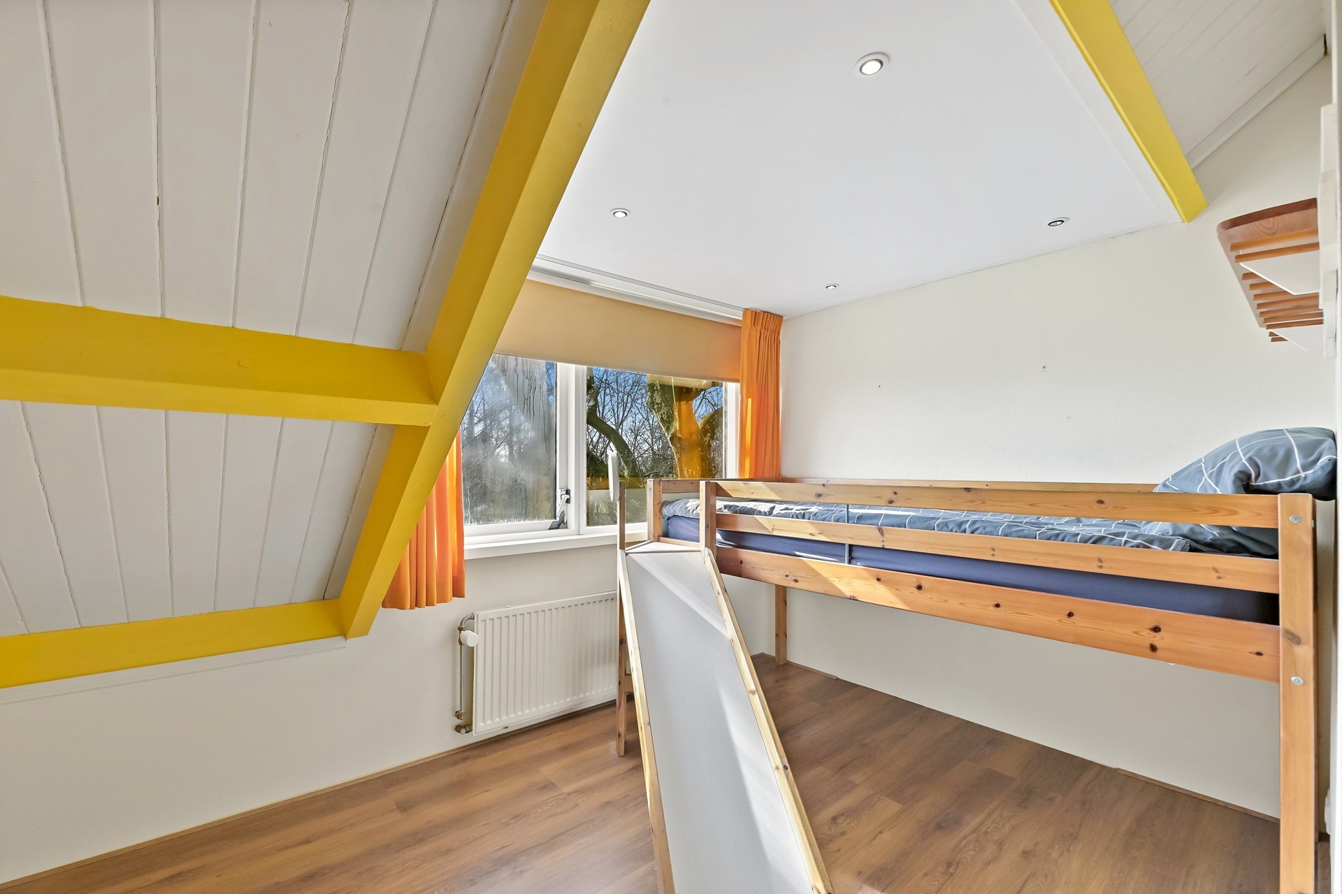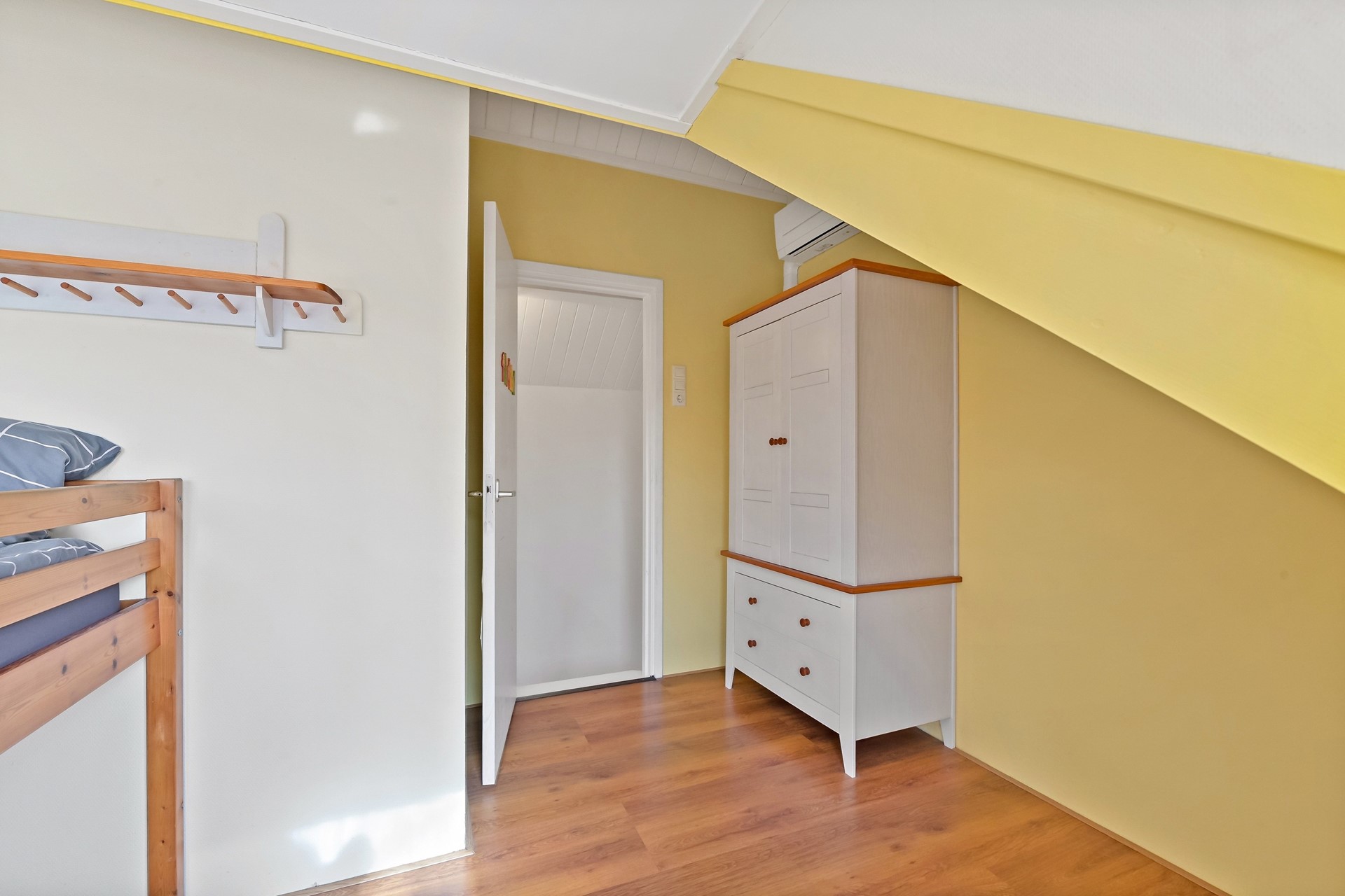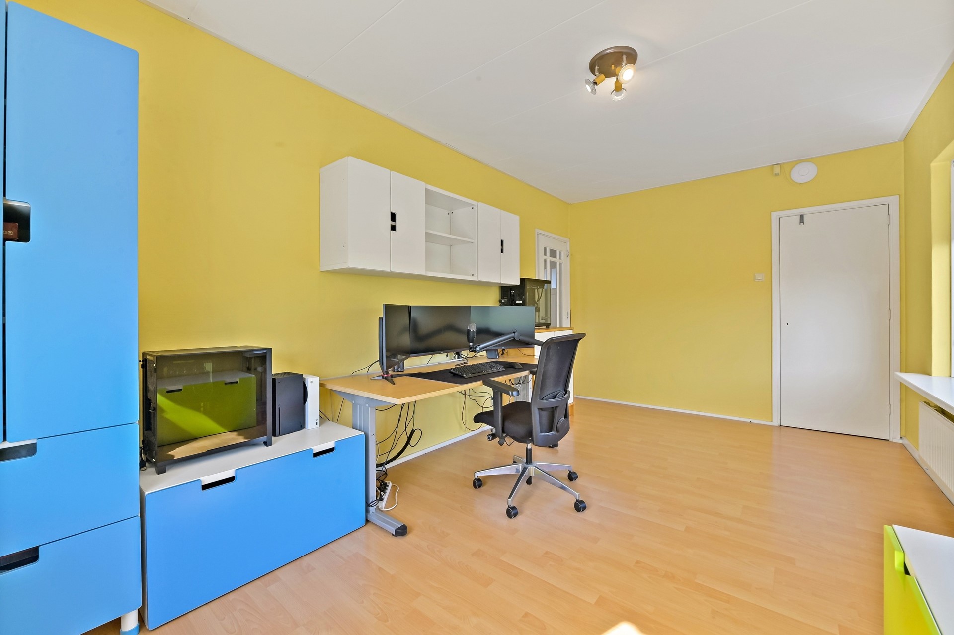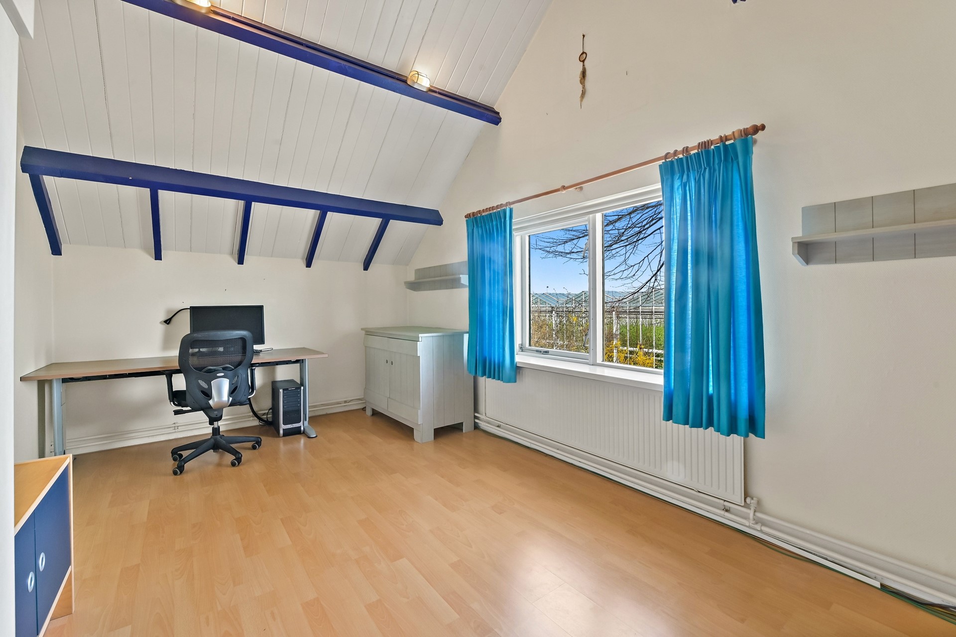 • Slaap/-werkkamer op de begane grond aan de voorzijde met vaste kast.