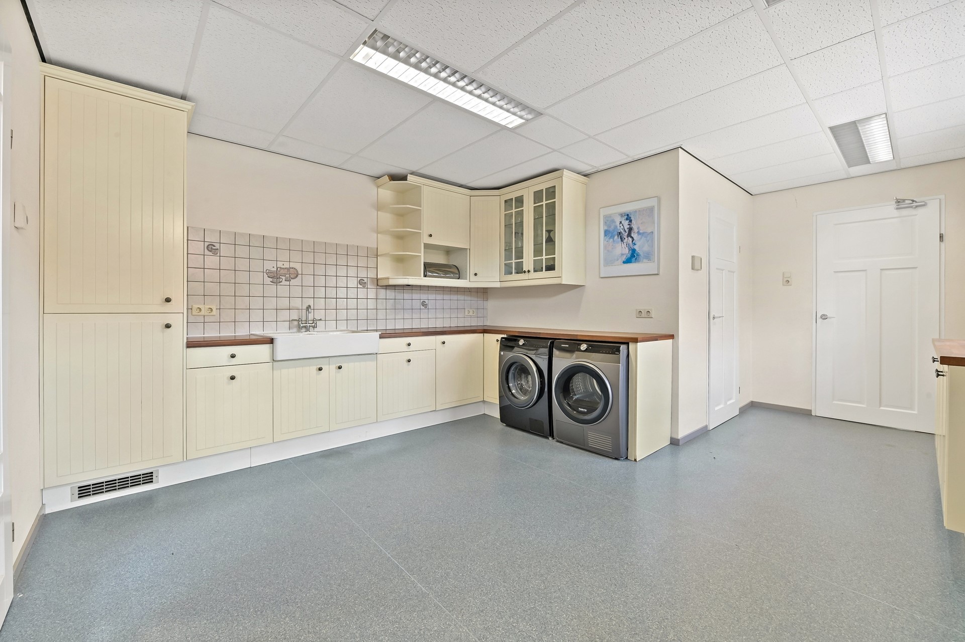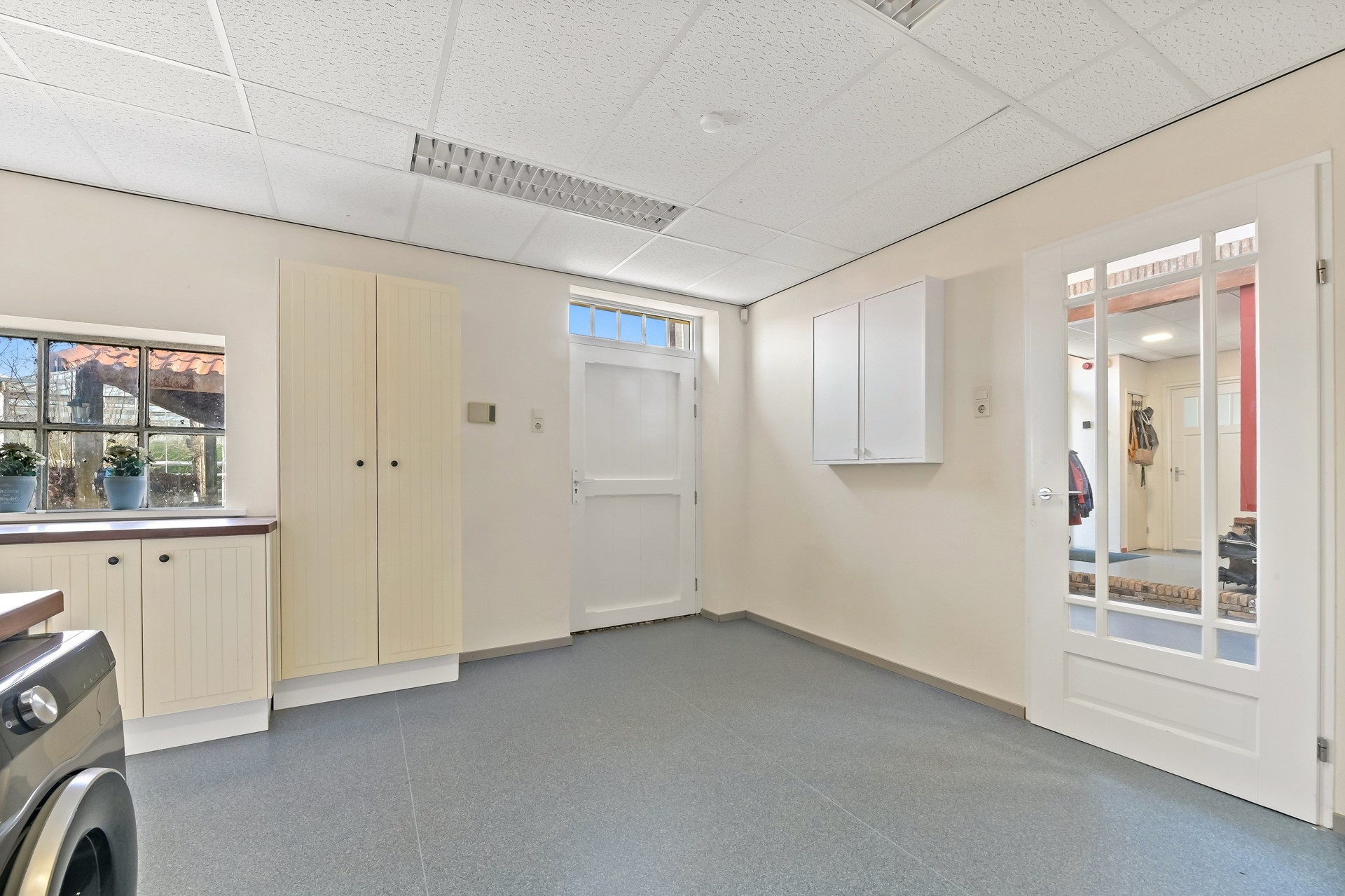 • Ruime bijkeuken annex wasruimte met praktisch keukenblok en naastgelegen technische ruimte.