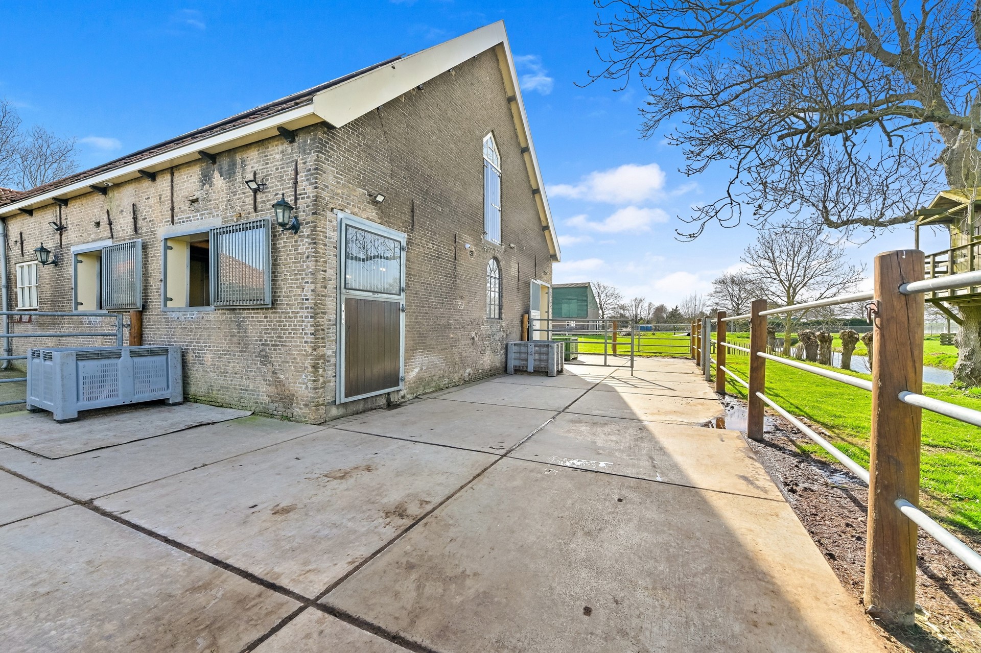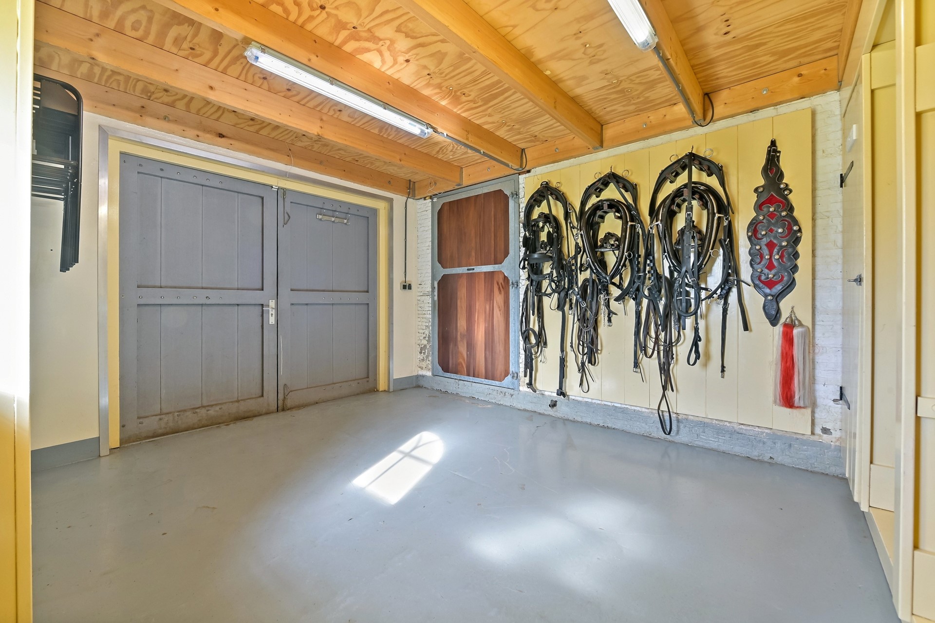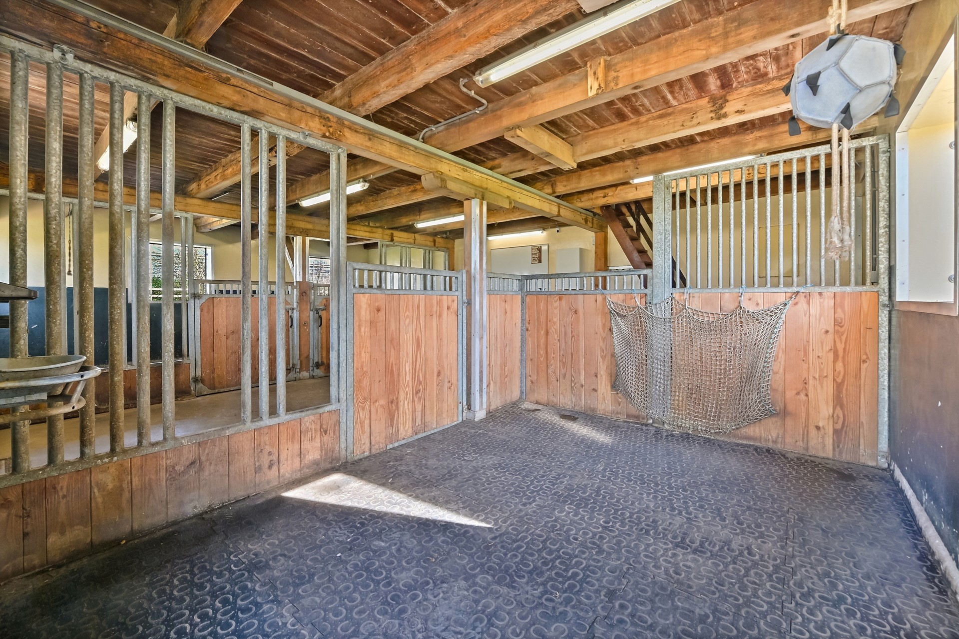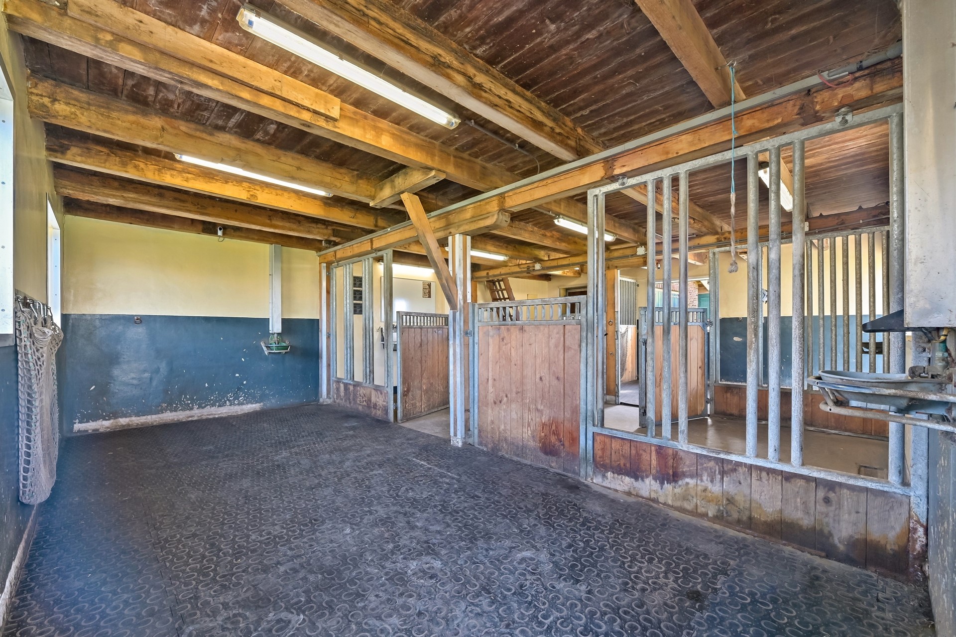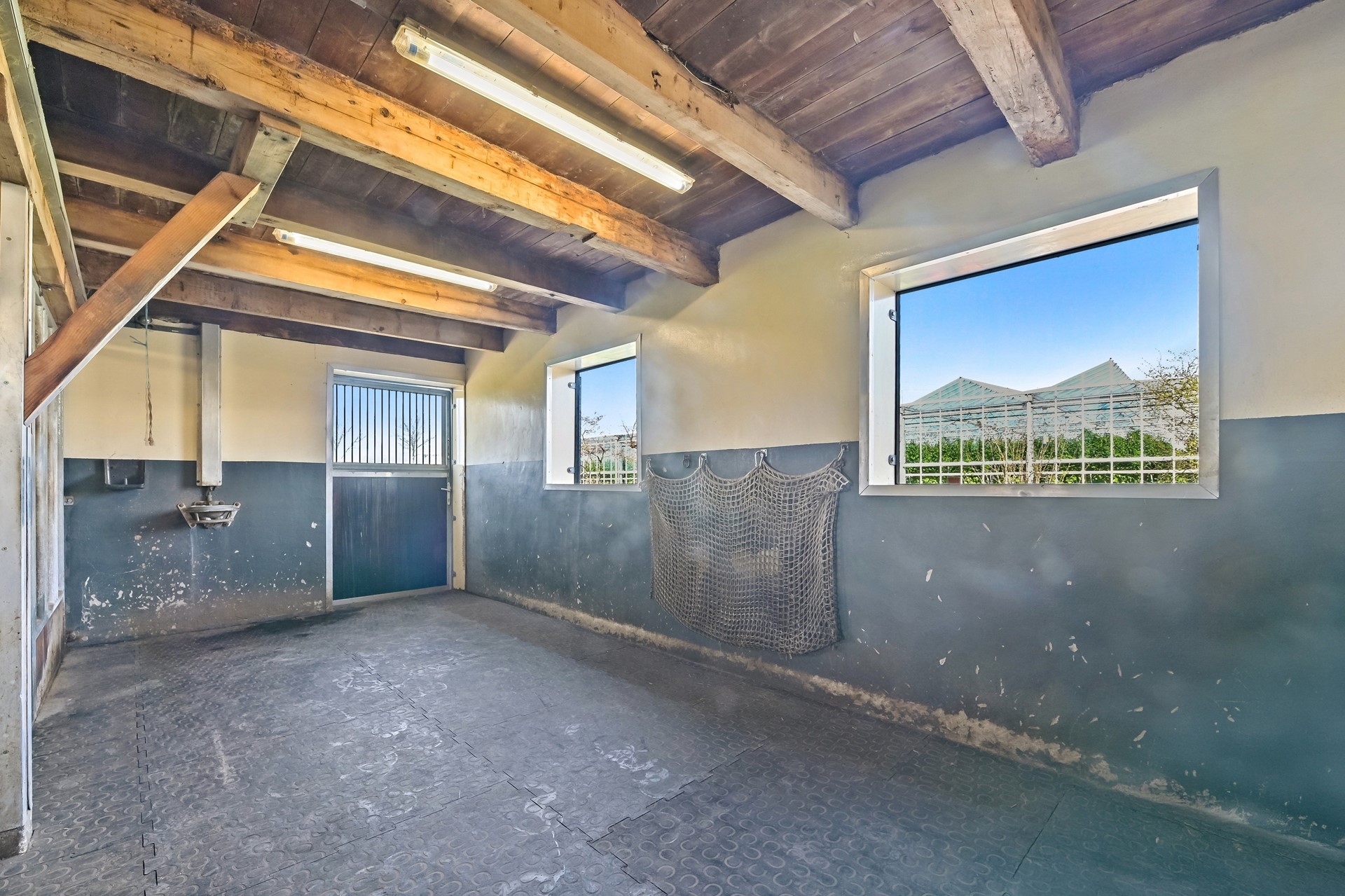 • Beide boxen hebben een uitloop naar een verharde paddock voor 24/7 bewegingsvrijheid van de paarden.