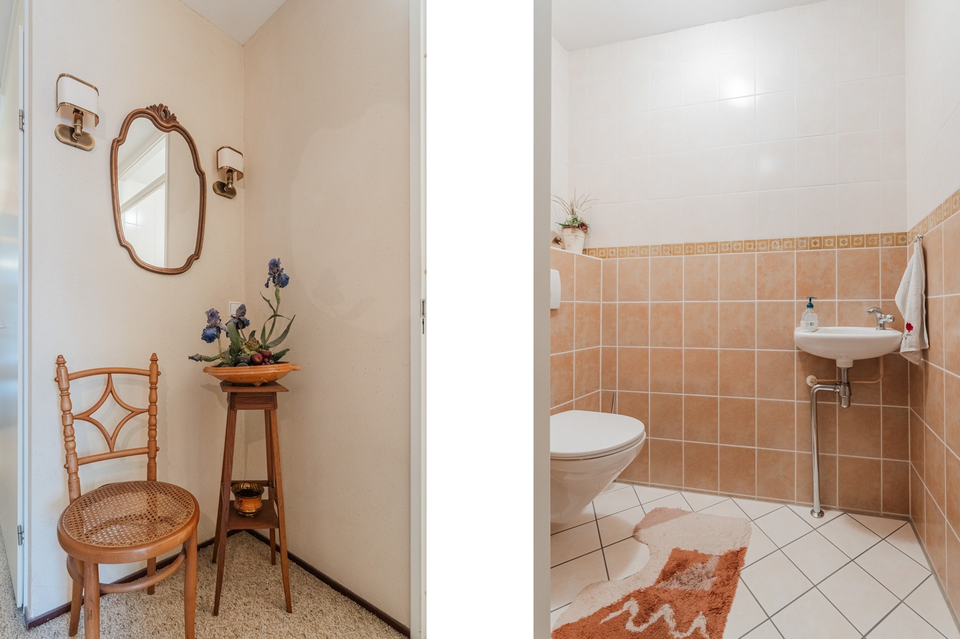 • Het toilet in de hal is voorzien van een zwevend closet en wasbakje.