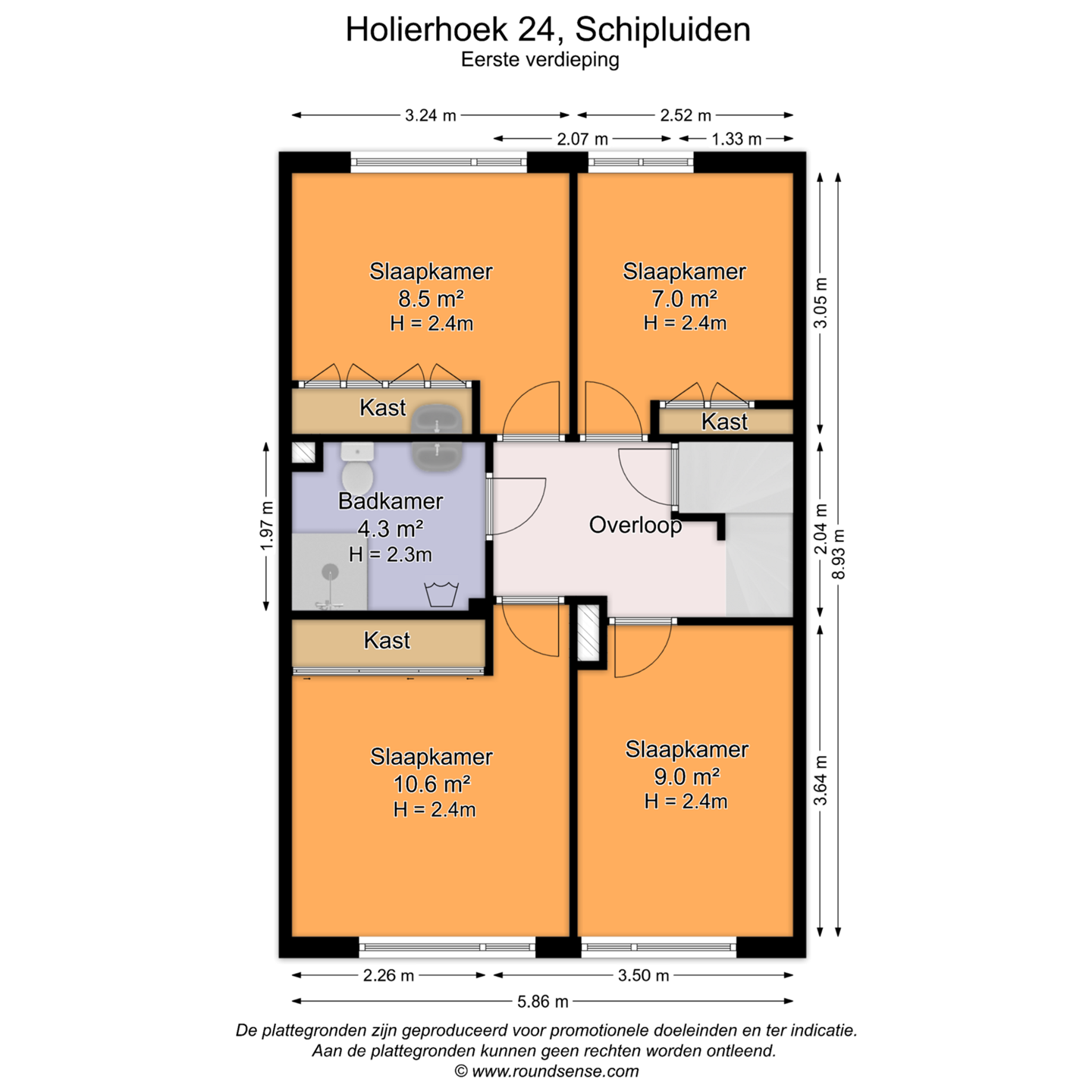 • Eerste etage met 4 slaapkamers, waarvan 1 kamer met een vaste inbouwkast. In de slaapkamers aan de voorzijde is het heerlijk wakker worden met zicht op de ijsbaan van ijsclub Vlietland en de polder.
