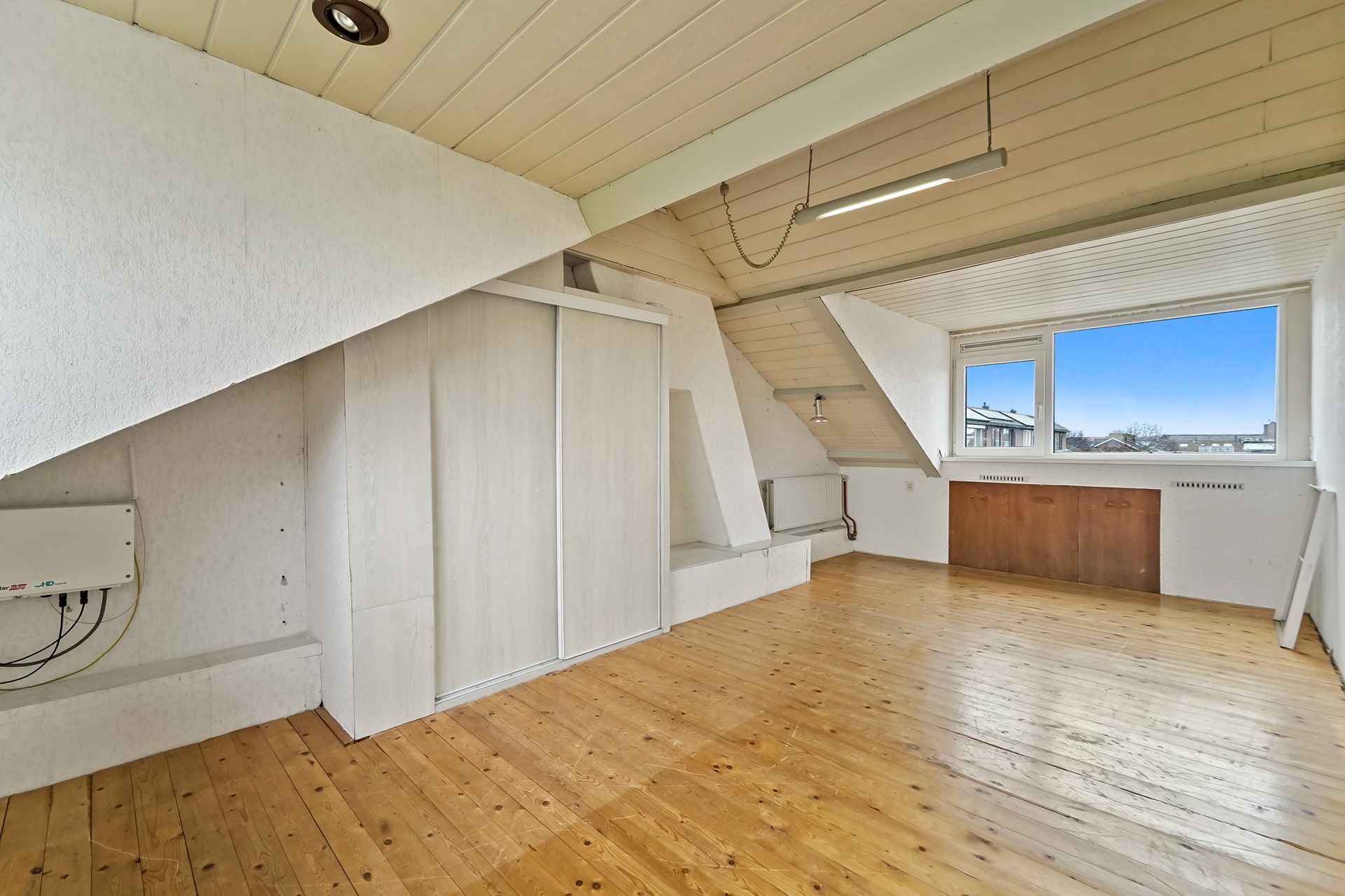 • Grote slaapkamer met vaste kast, cv-ketel en wastafel.