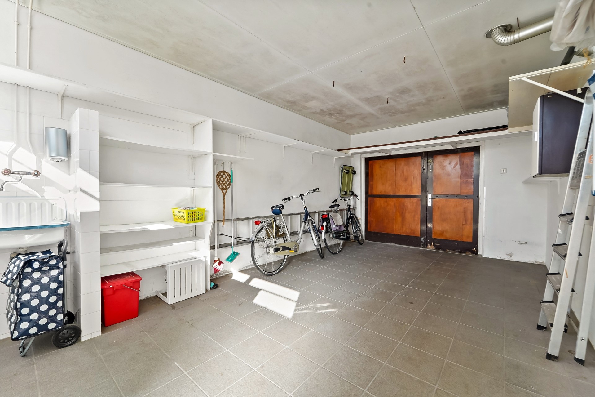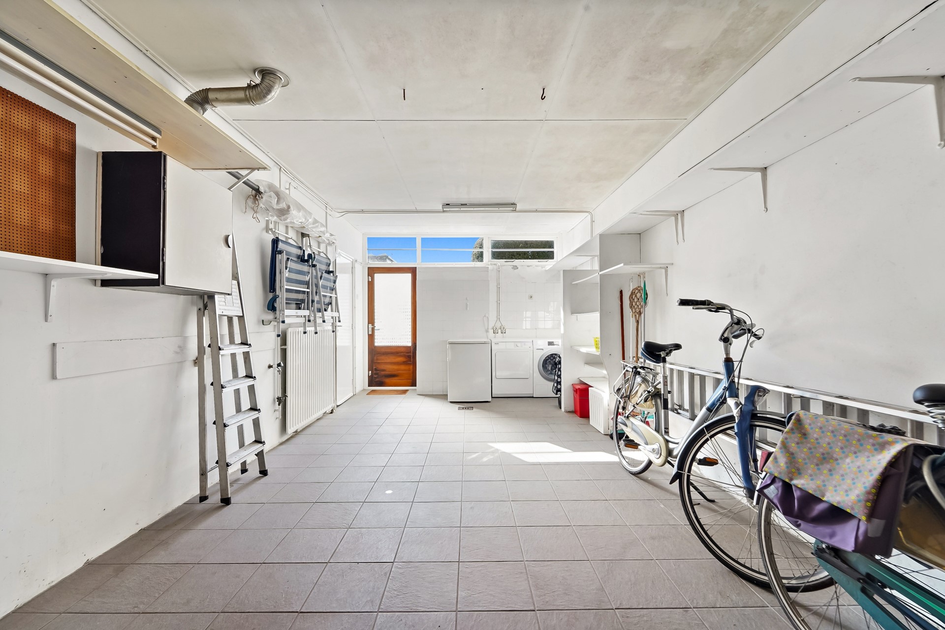 • De aangebouwde garage is voorzien van een wasbak, wasmachine- en droger aansluiting.