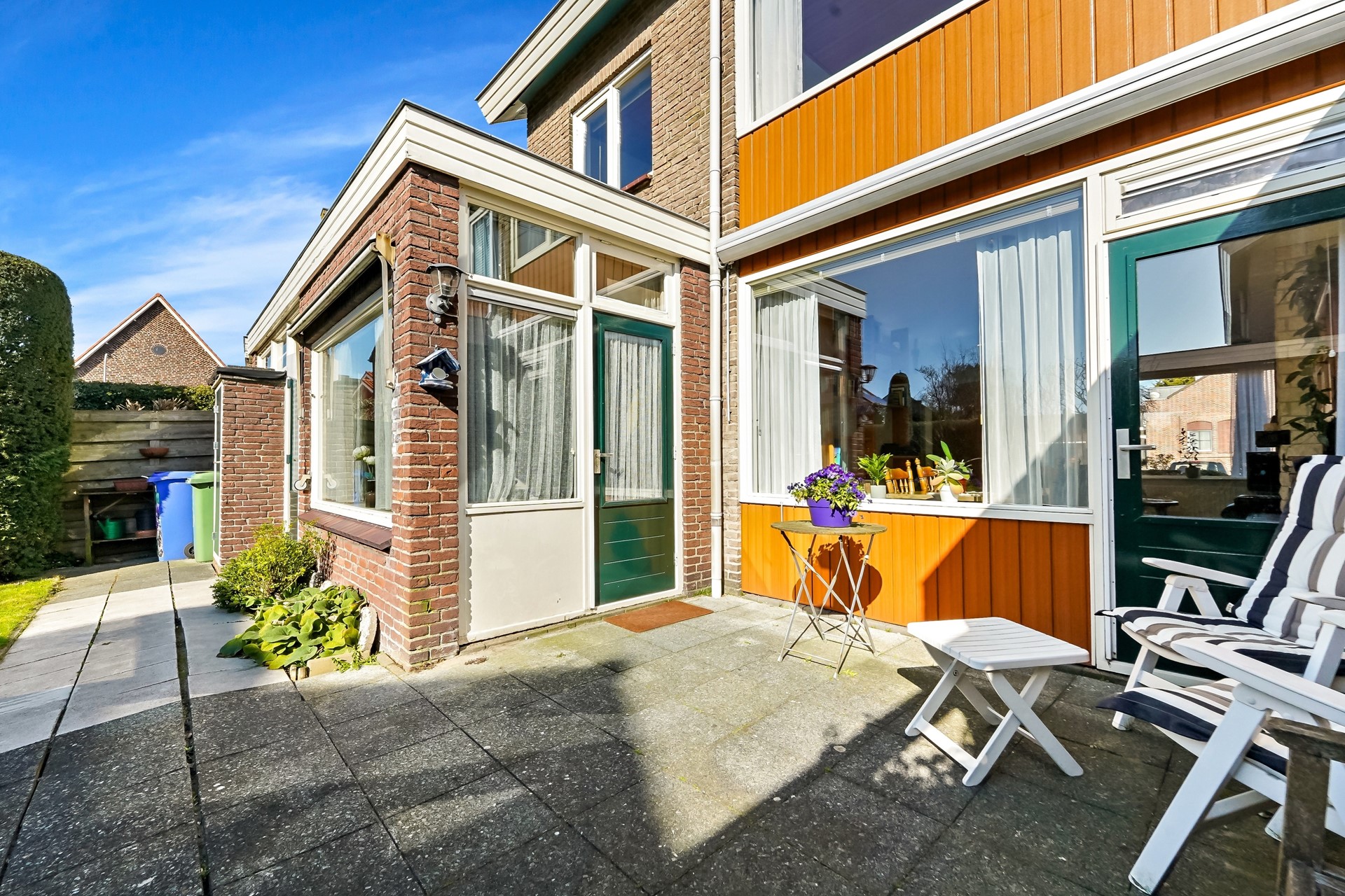• Ruime tuingerichte woonkamer met deur naar de tuin.